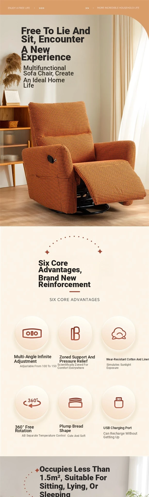 Modern Minimalist Space-Saving Sofa Chair - Versatile Recliner for Small Spaces, Perfect for Home Theaters and Relaxation