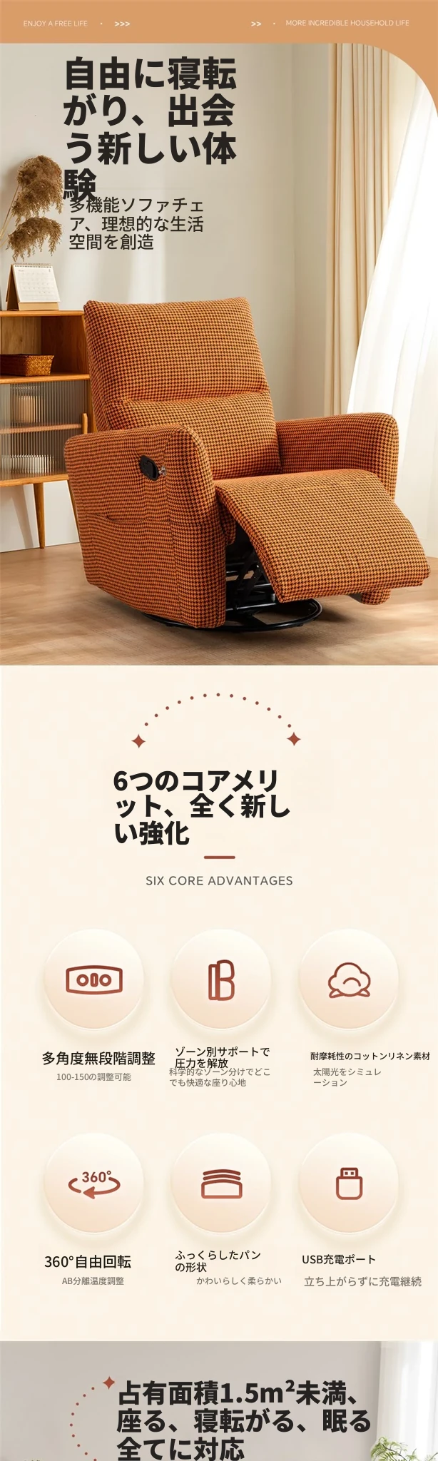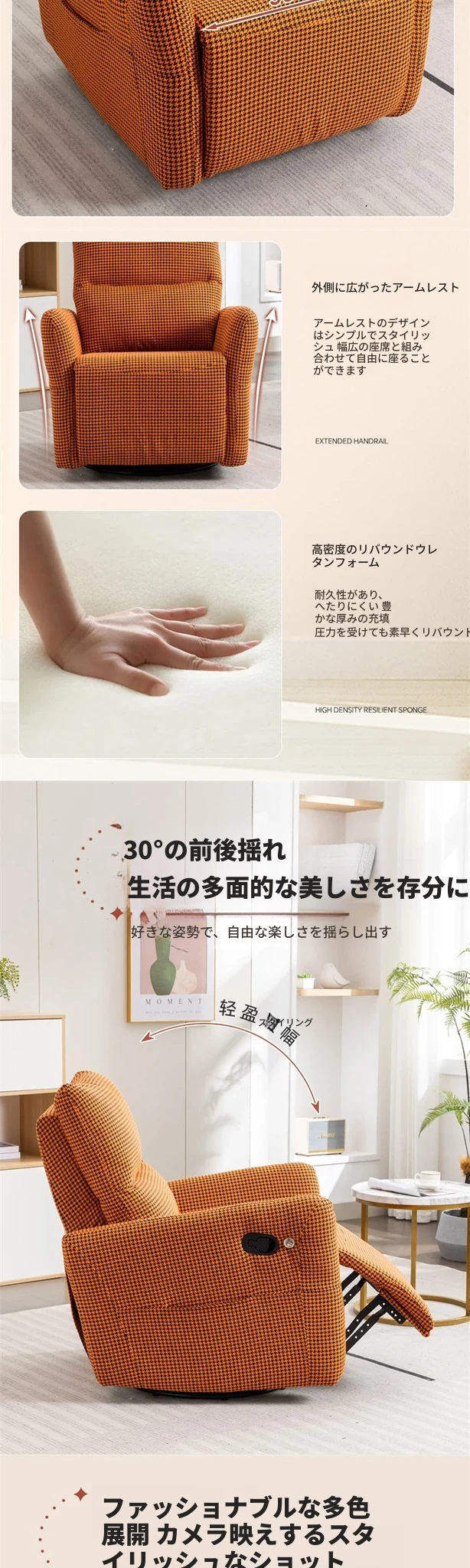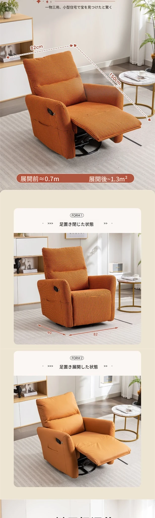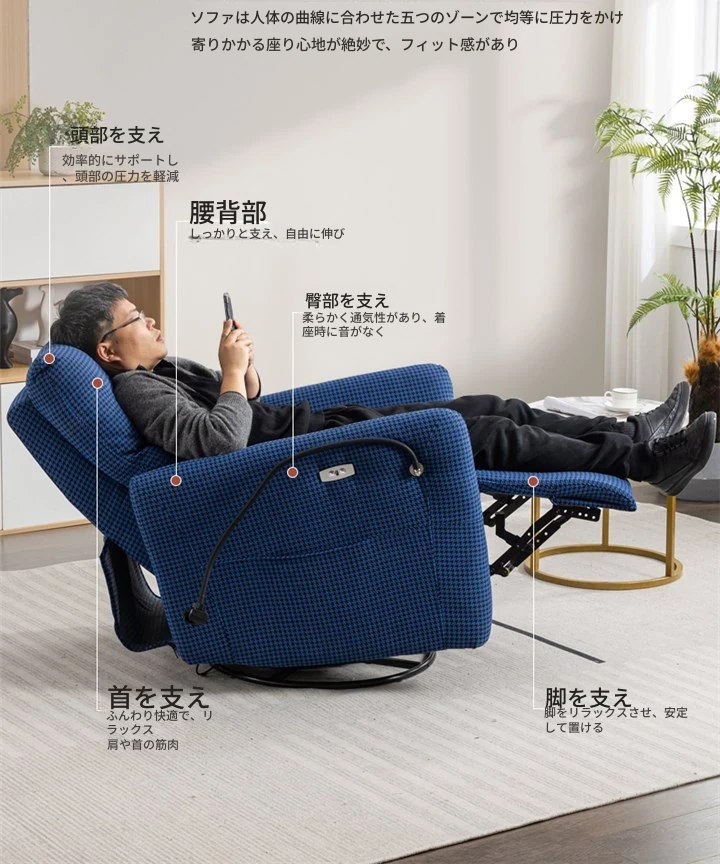 シンプルでモダンな小型ソファチェア|究極のリラックス体験|スペース機能付き|ラウンジチェア|プライベートシアターに最適!