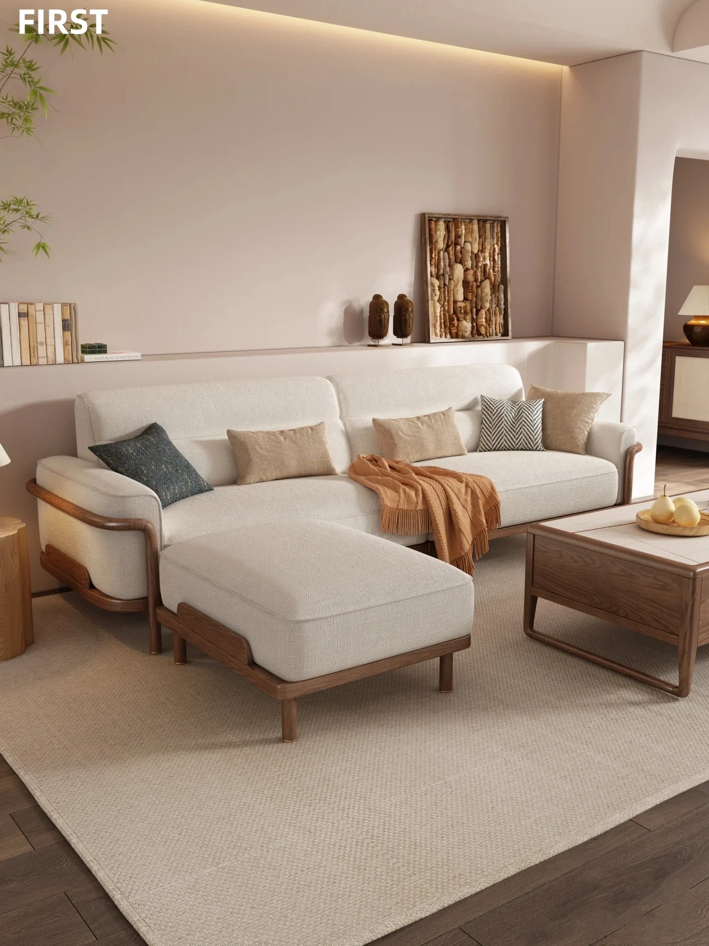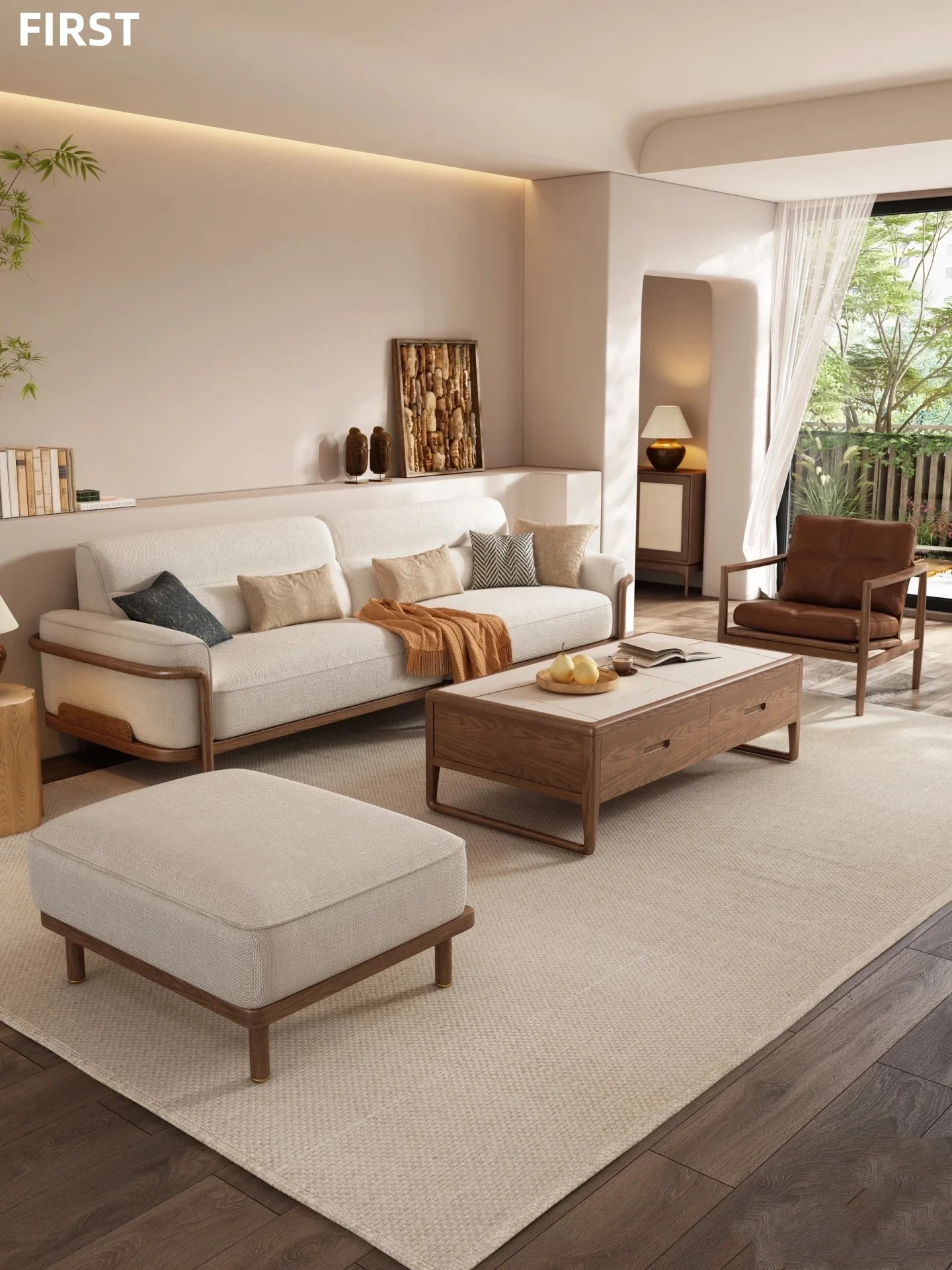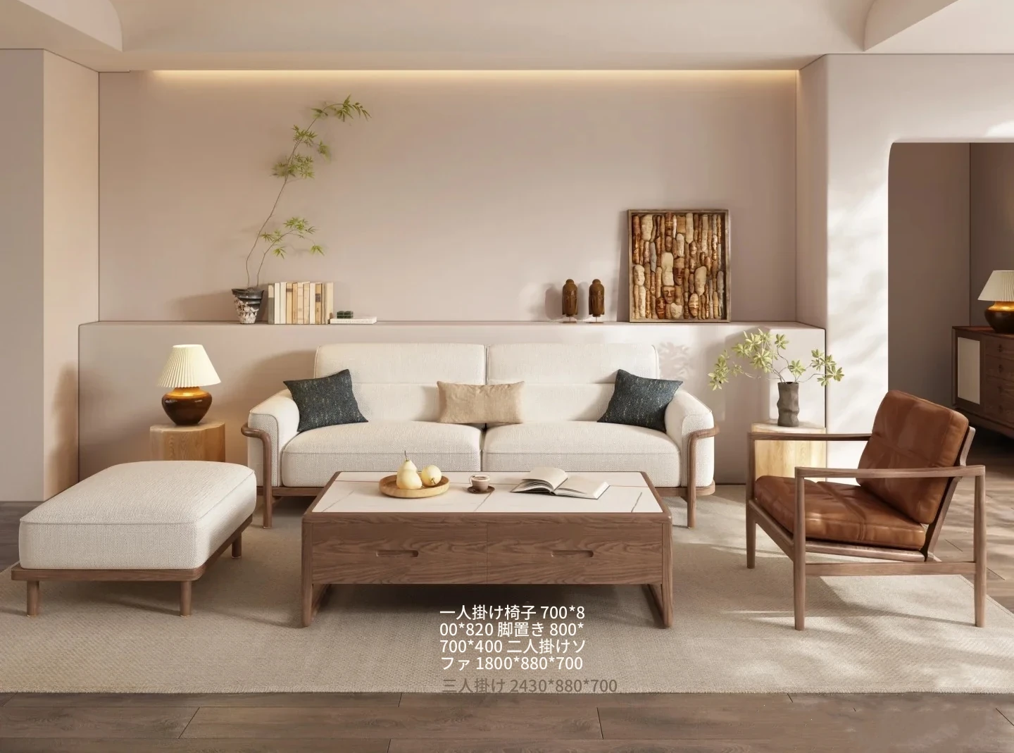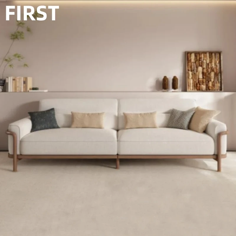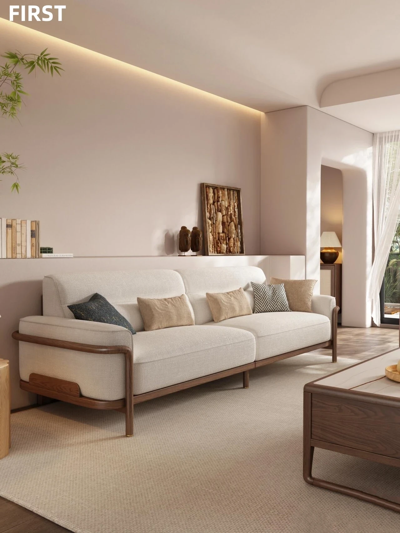 新中式高級シンプル全木製ファブリックソファ|大小型住宅・ホテル・民宿に最適な最新直置きソファで、洗練された空間を演出します。