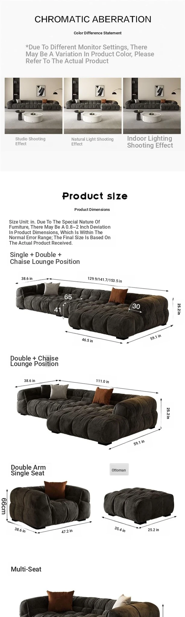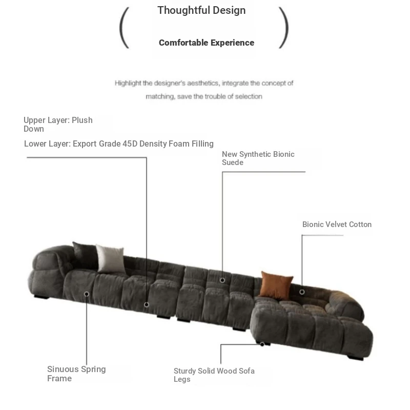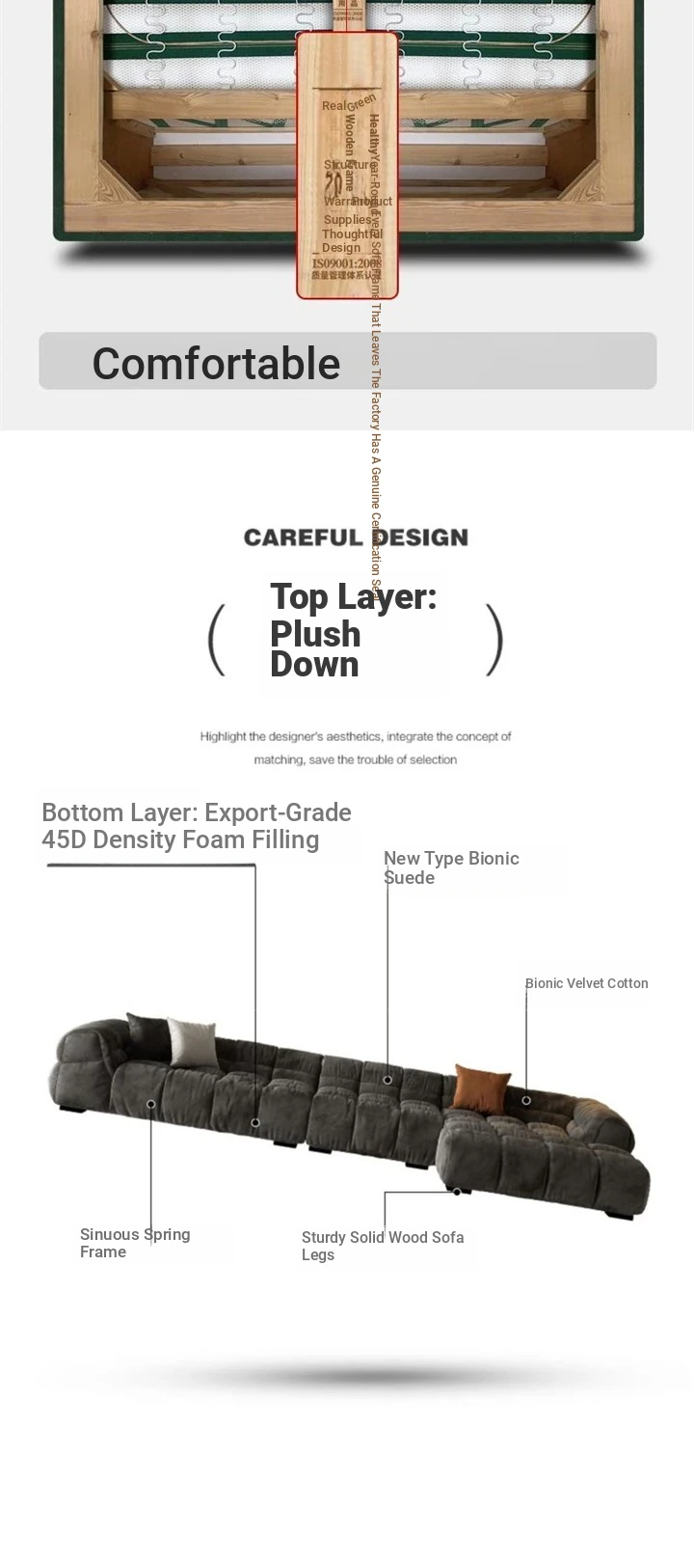 141.73in Double + single + imperial concubine position + double armrest unit suede fluffy down + high rebound sponge