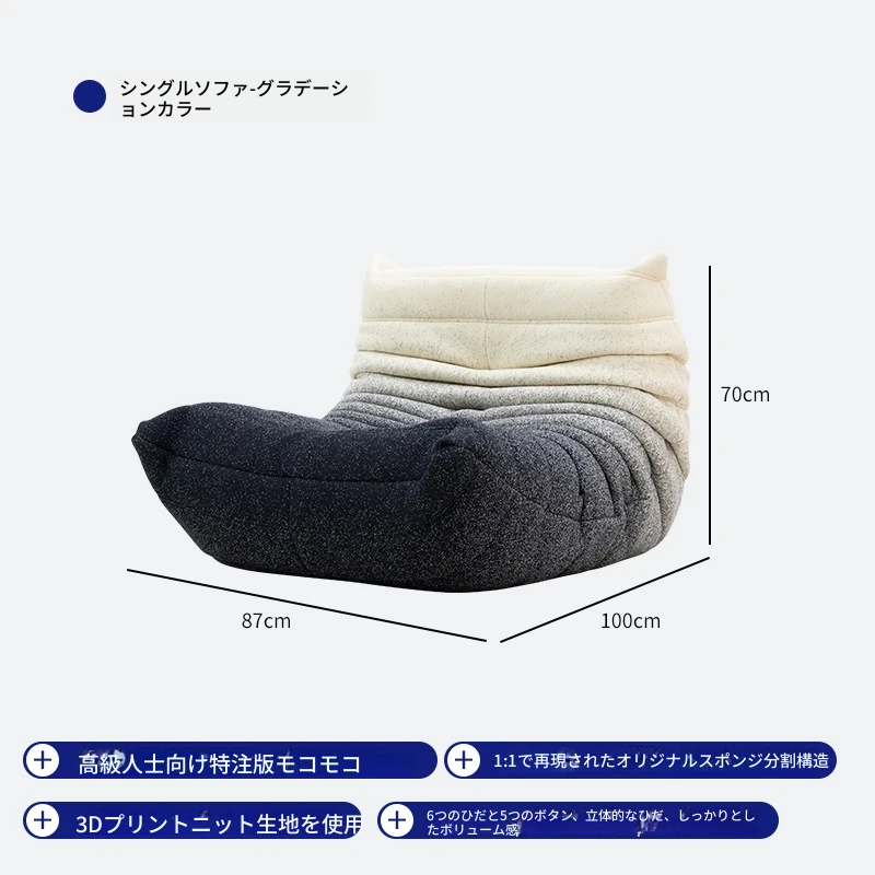 北欧スタイルのモコモコカタツムリソファ|ラグジュアリーでおしゃれなデザイン|シンプル&快適なリラックスチェア|リビングやバルコニーに最適な一人用ソファ
