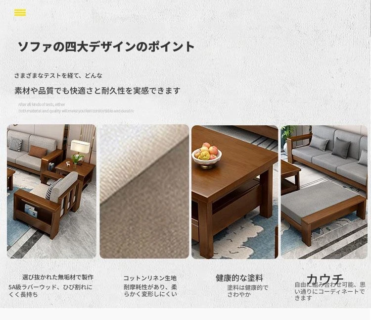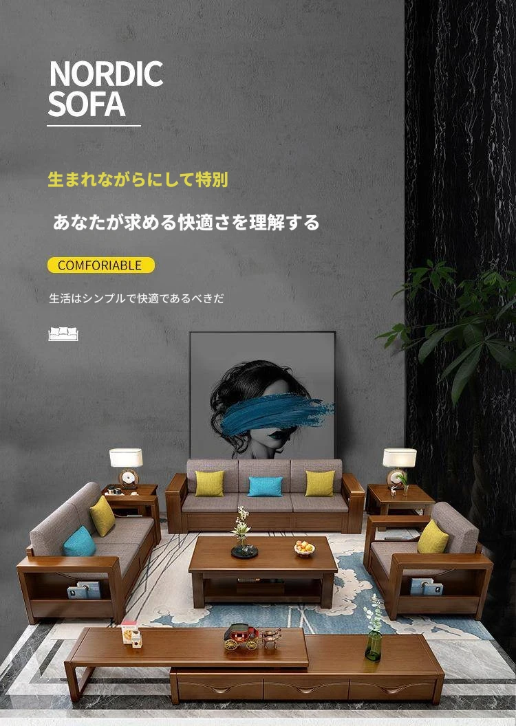 北欧スタイルのファブリック&無垢材ソファセット|大小様々な部屋にフィット|多機能リビング家具|オフィスやホテルにも最適なデザイン!