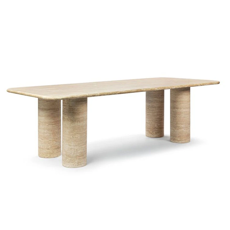洗練された高級感のある大理石製ダイニングテーブル - モダンでシンプルな長方形デザイン、家庭用のテーブルとチェアのセット、別荘にぴったりのスタイリッシュな食卓。