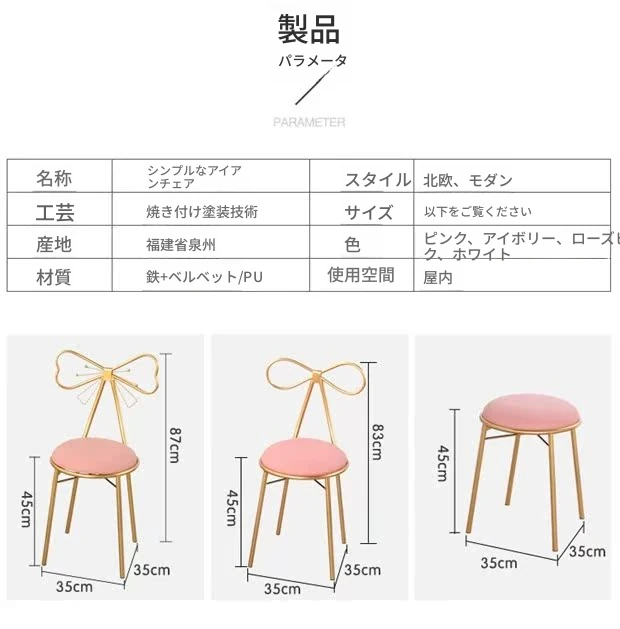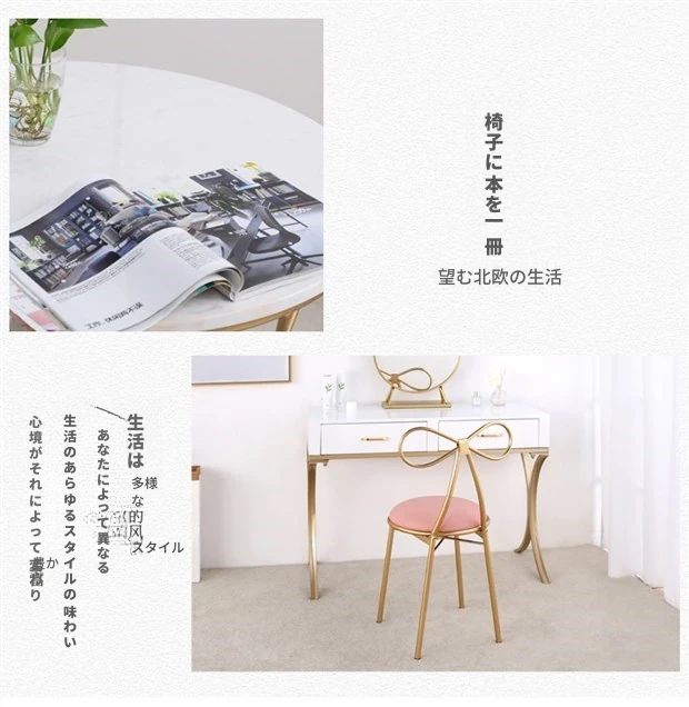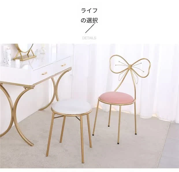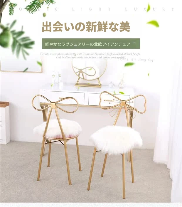 北欧風モダンアートスツール|おしゃれなインスタ映え!少女心をくすぐるドレッサー椅子|ネイルやメイクに最適なリボン付きチェア✨あなたの部屋を素敵に演出!