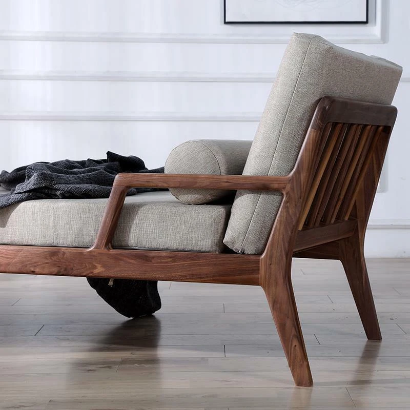 北米産ブラックウォールナットとホワイトアッシュのソファベッド新中式デザイン!オフィスやホテル、民宿に最適なリクライニングチェア。ラグジュアリーな貴妃椅子で、リビングルームをスタイリッシュに演出します!
