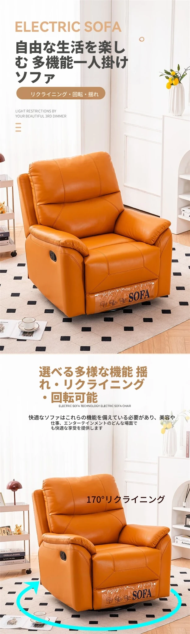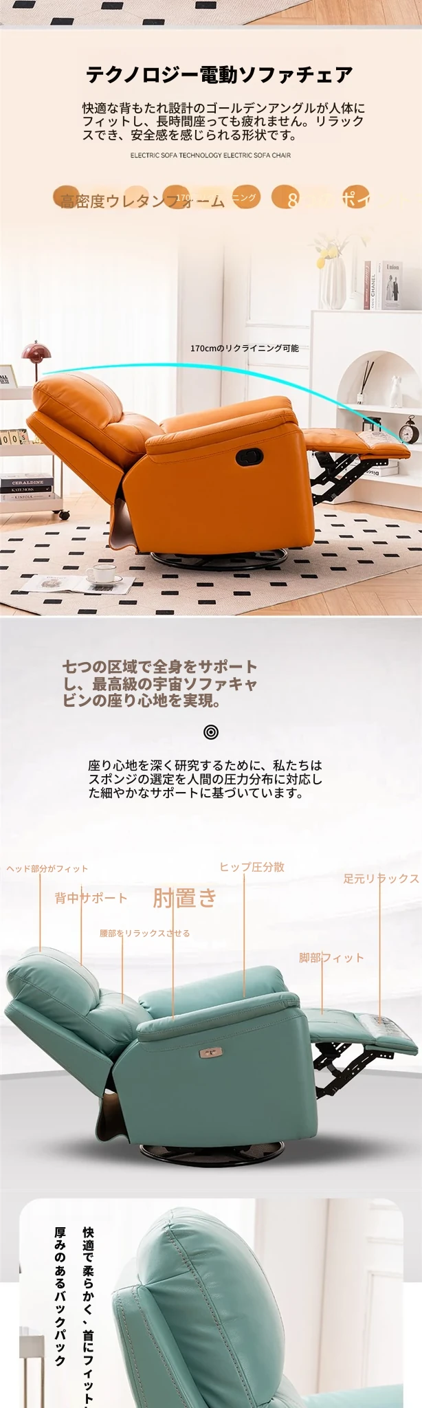 電動リクライニング+USB+275度回転+スイング