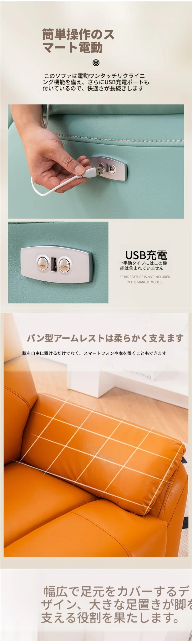 電動リクライニング+USB