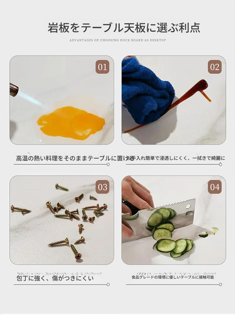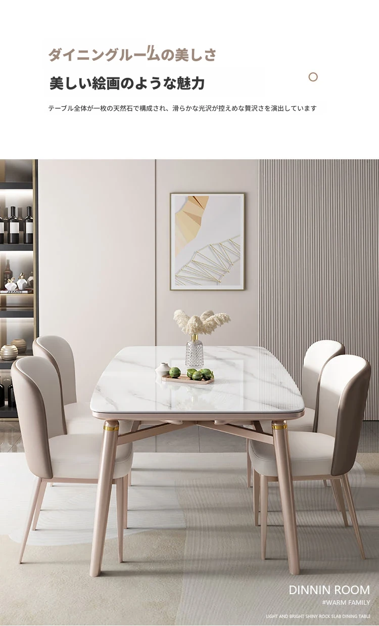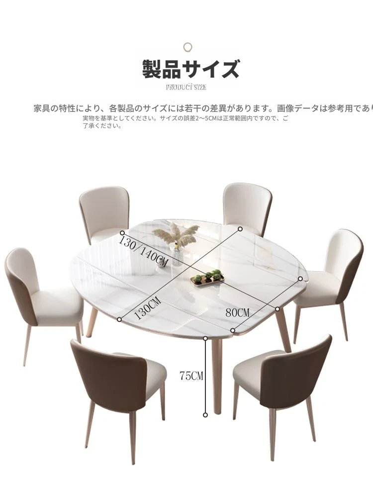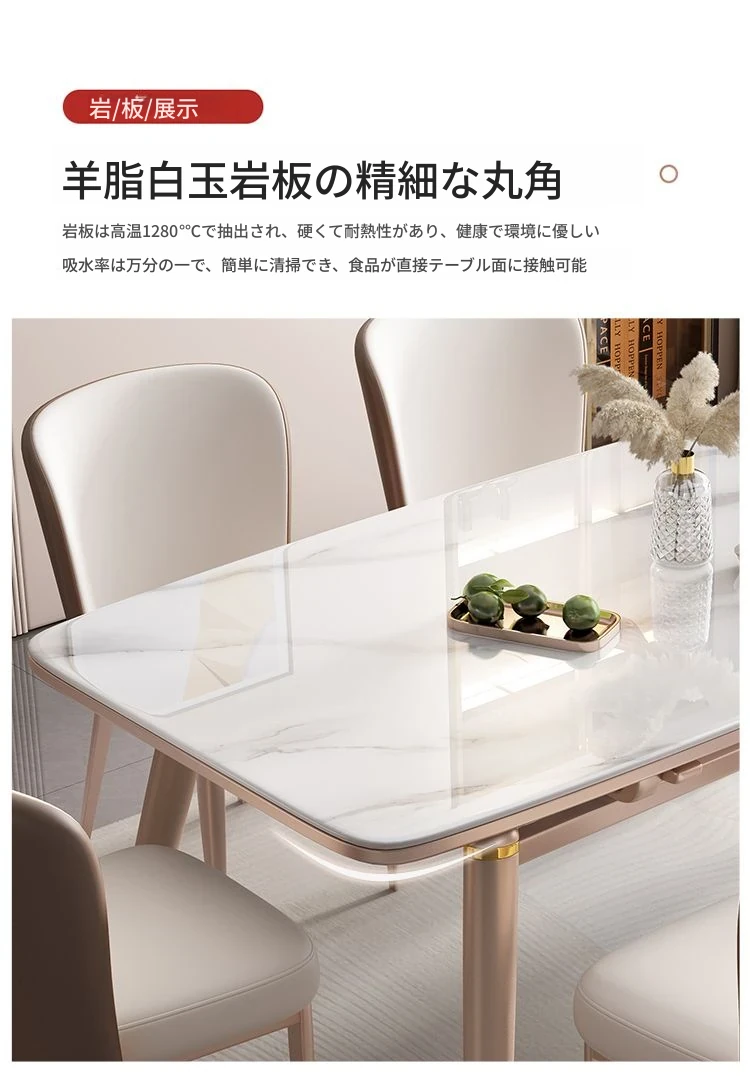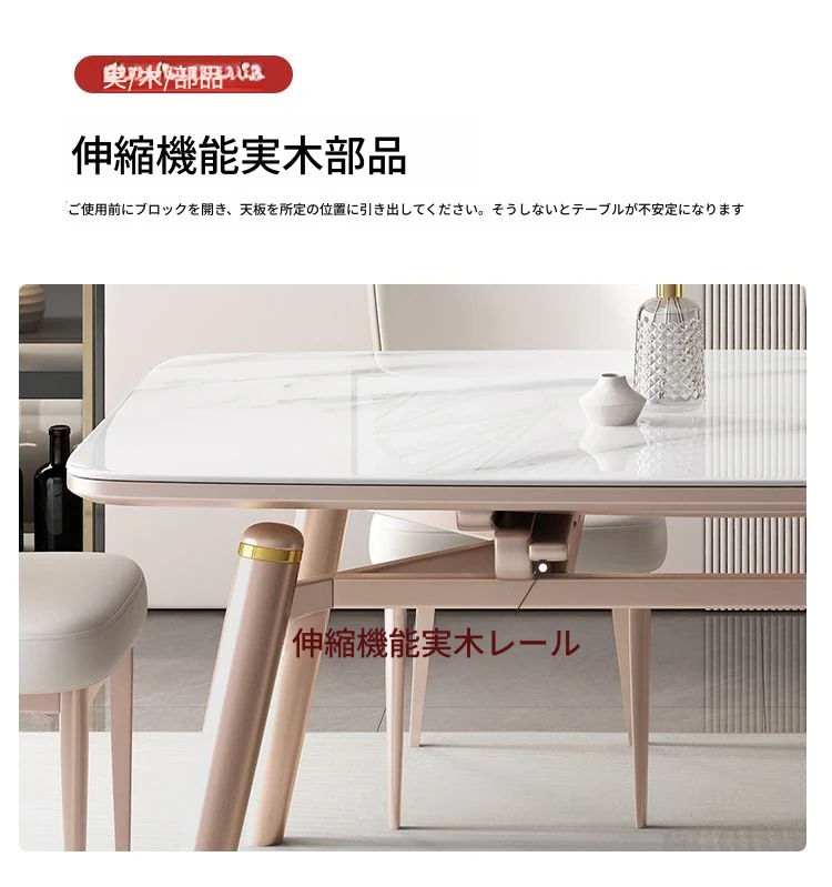 高級岩板使用の伸縮式ダイニングテーブル - 小さな家に最適!強化底板付きで、家族みんなが使える丸型・四角型の2WAYデザイン。おしゃれで機能的な空間を演出します!