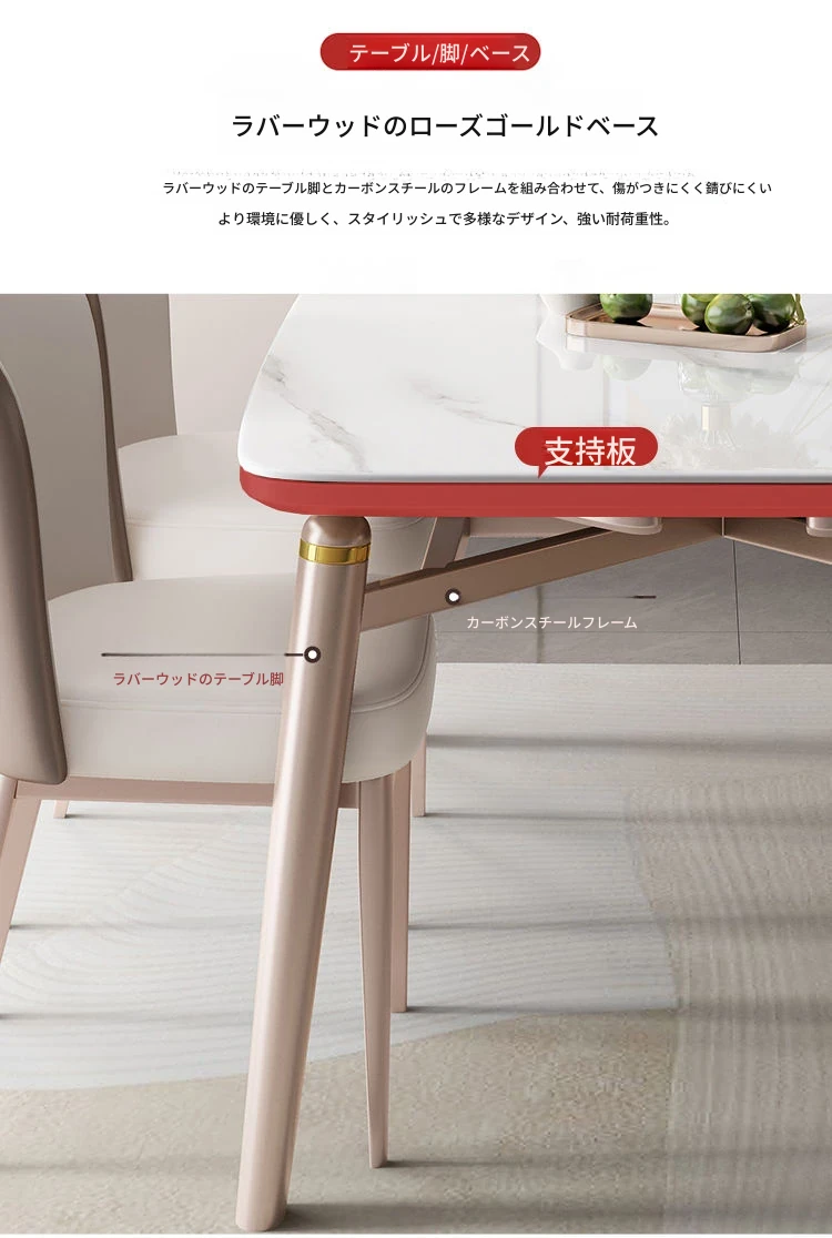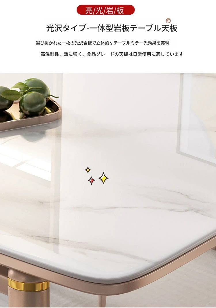 【12mm岩板】伸縮ダイニングテーブル+パイナップルチェア*4