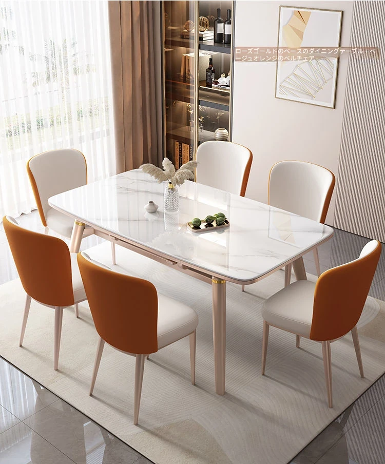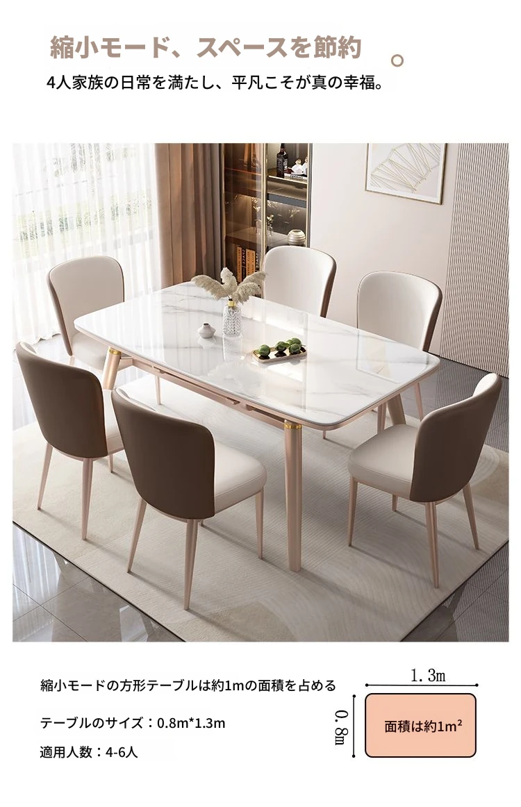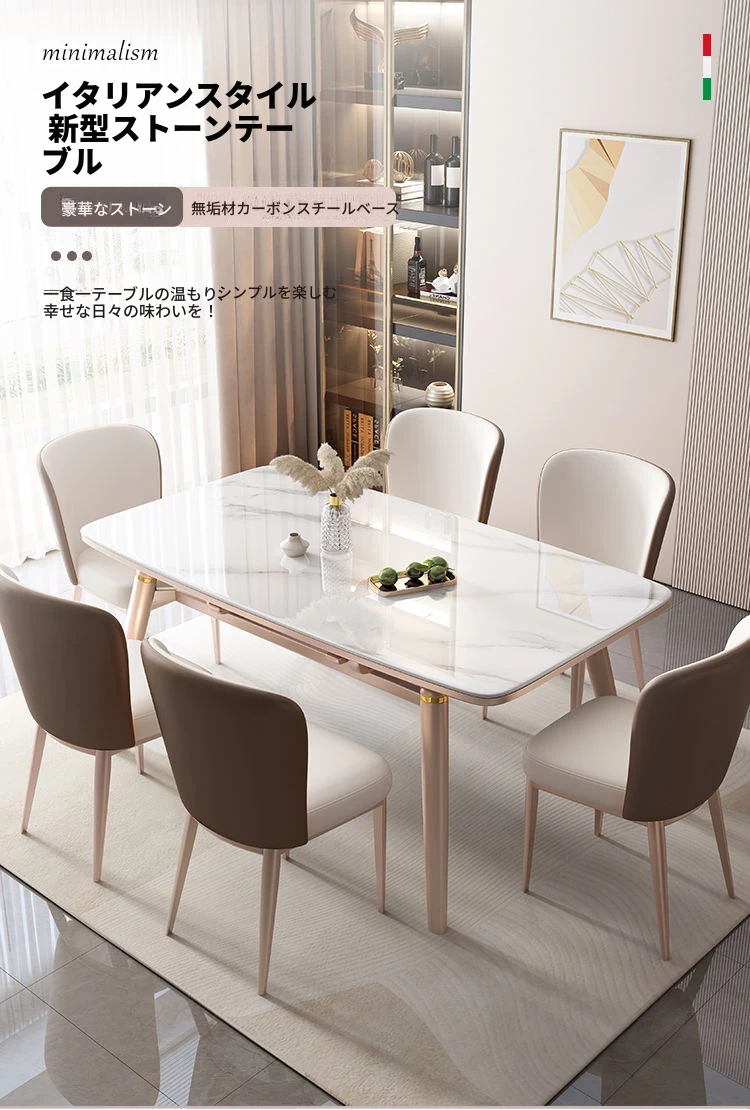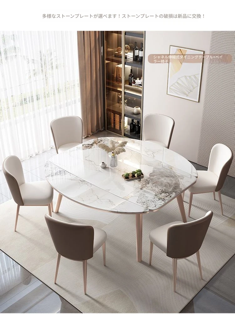 【12mm岩板】伸縮ダイニングテーブル+広派椅子*6