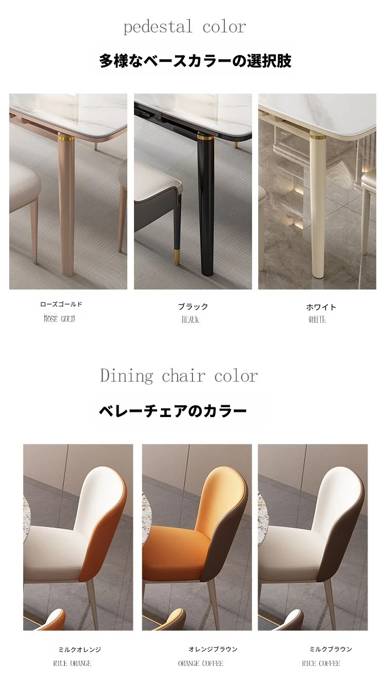 【12mm岩板】伸縮ダイニングテーブル+ベイラー椅子*6