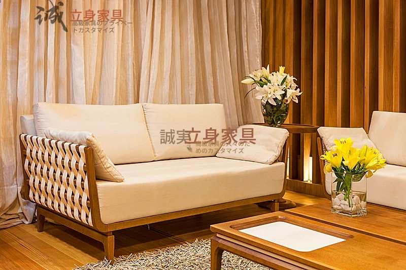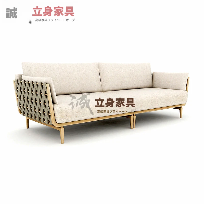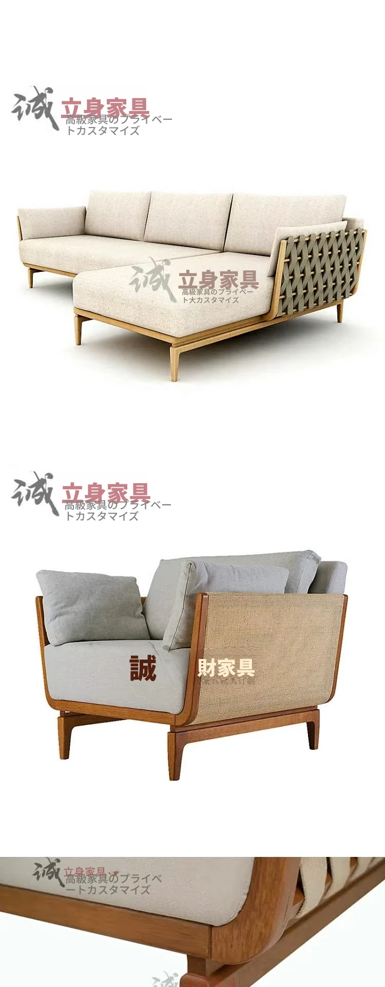 新作!ロープ編みイタリアンスタイルの藤製アメリカンファブリックソファ。天然木使用のモダンな中華風デザインで、洗練された居心地の良さを実現。お部屋にぴったりのスタイリッシュなアイテムです!
