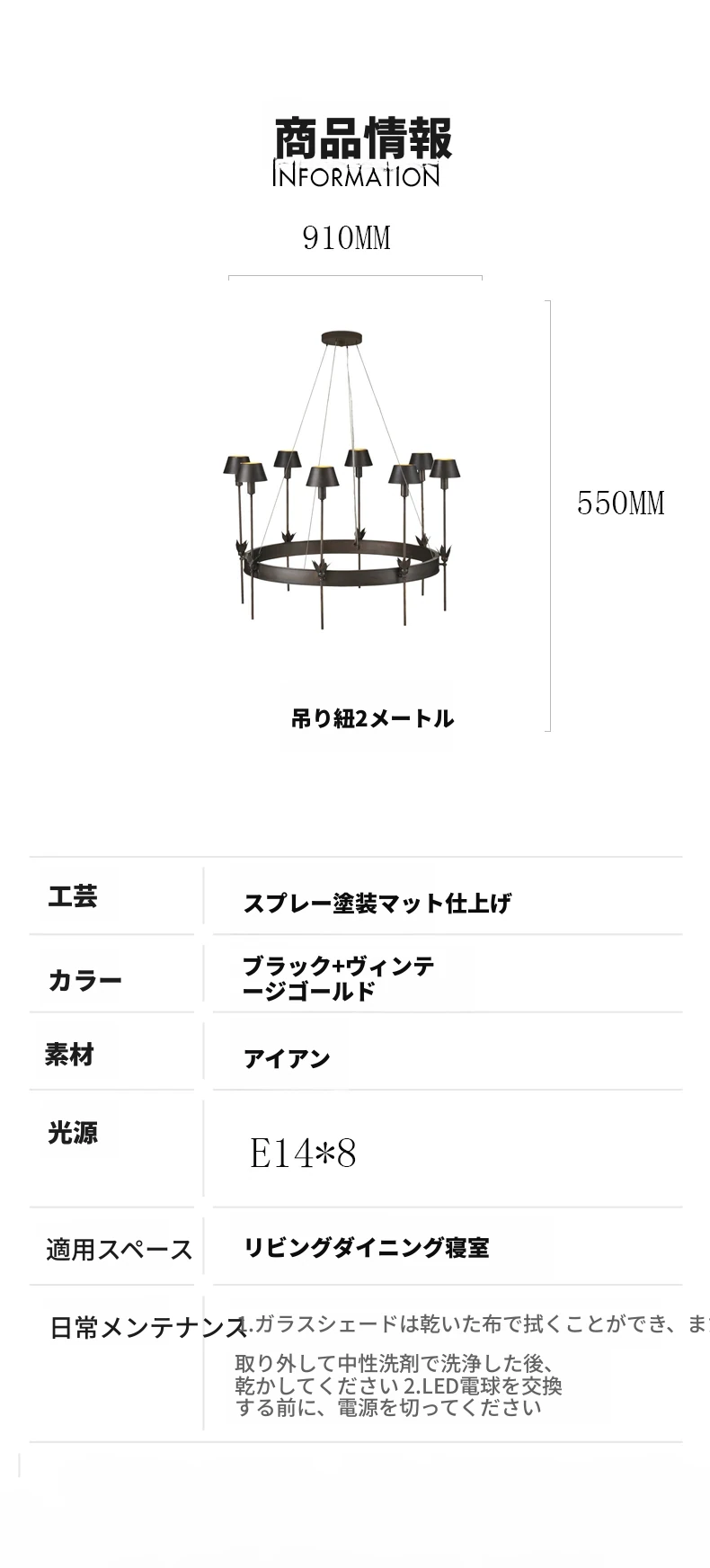 8灯シャンデリア【4W暖色光源付き】直径91*高さ55cm