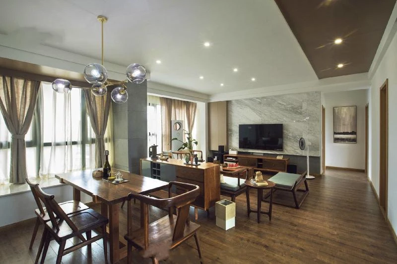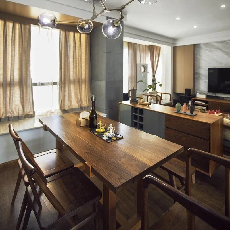 黒檀の円形ダイニングテーブル - スライド式で家庭用にもぴったり!新しいKスタイルの中華風茶卓、禅の趣を感じる無垢材の家具で、心安らぐ食卓を演出します。