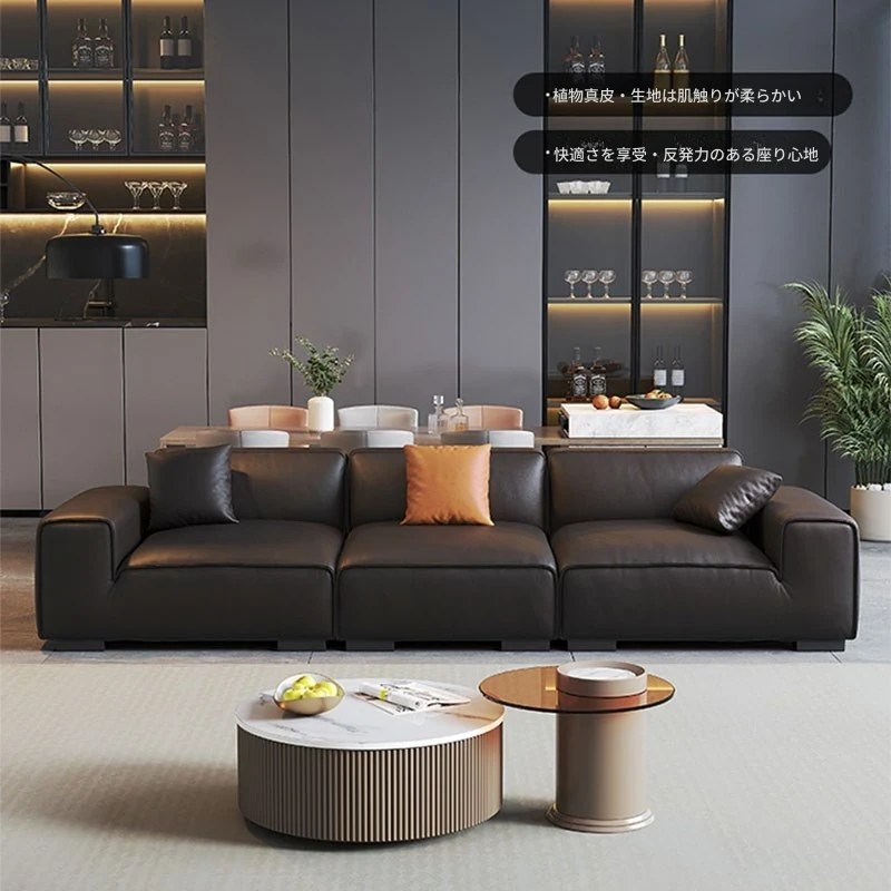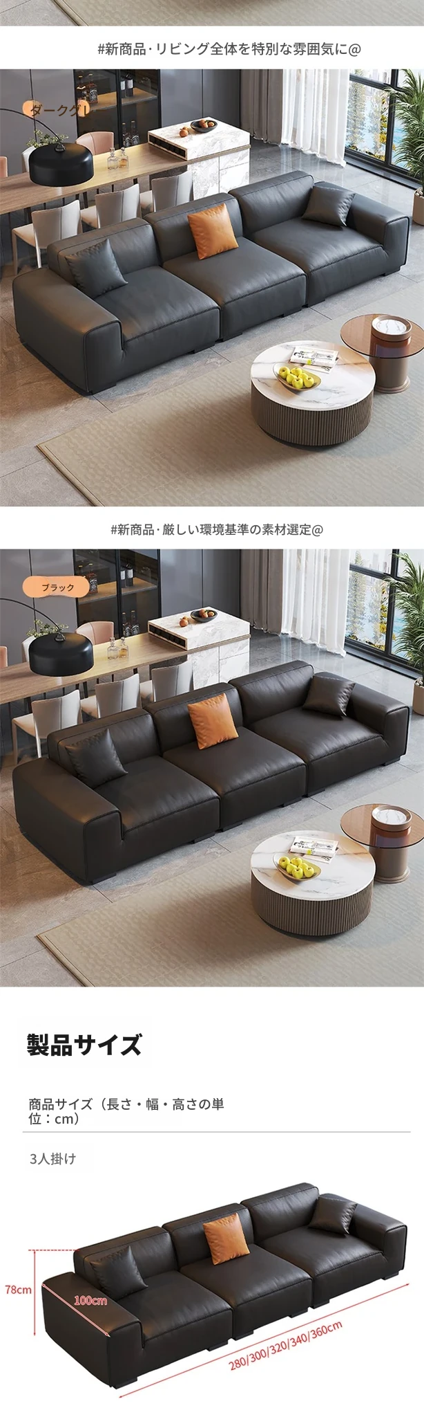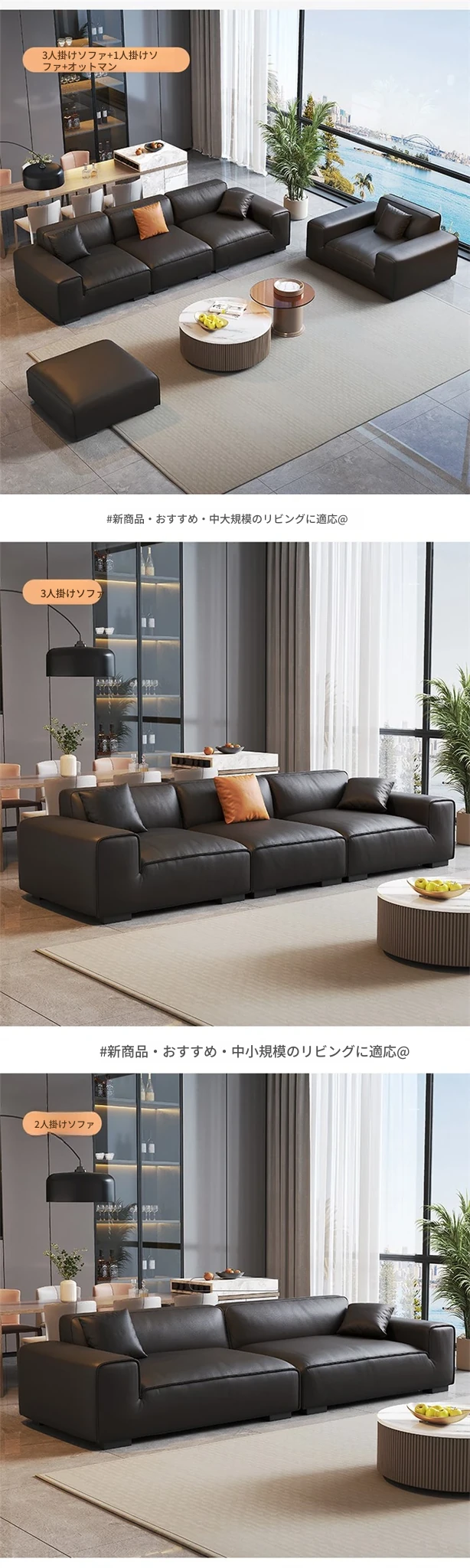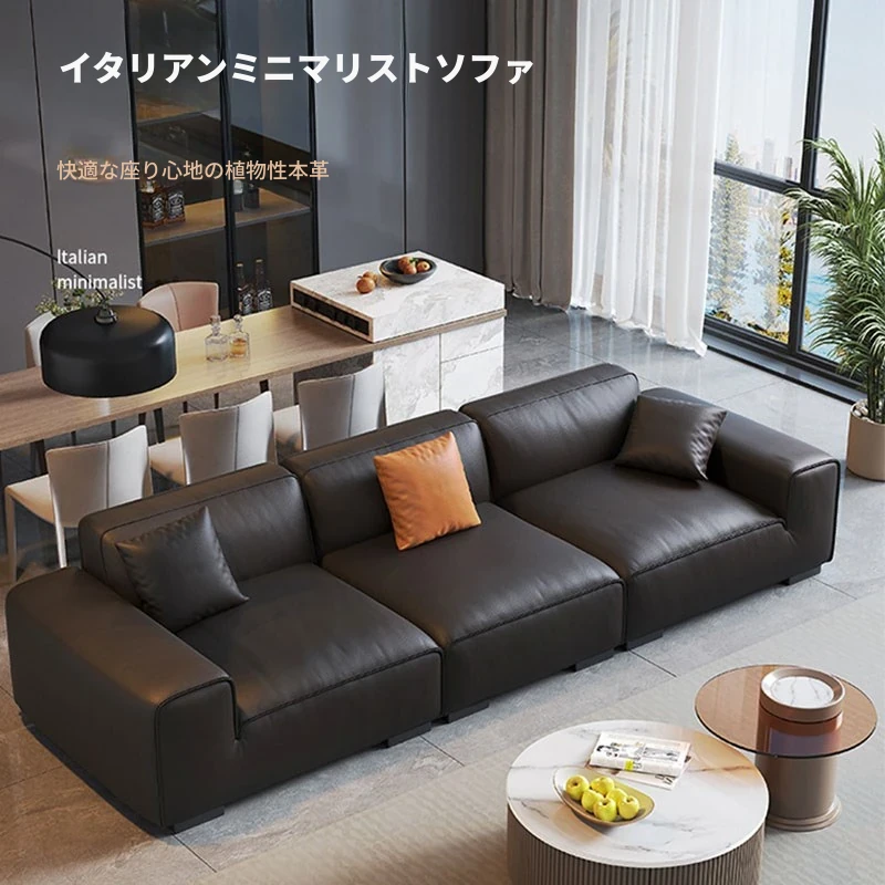 人気のイタリアンミニマル真皮ソファ!コンパクトサイズから大きなリビングにも最適。現代的でシンプルなデザイン、豆腐ブロックスタイルで快適さを追求。夏の涼しさを演出するブラックレザー。あなたの空間を一新!