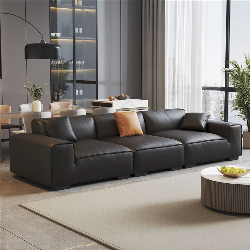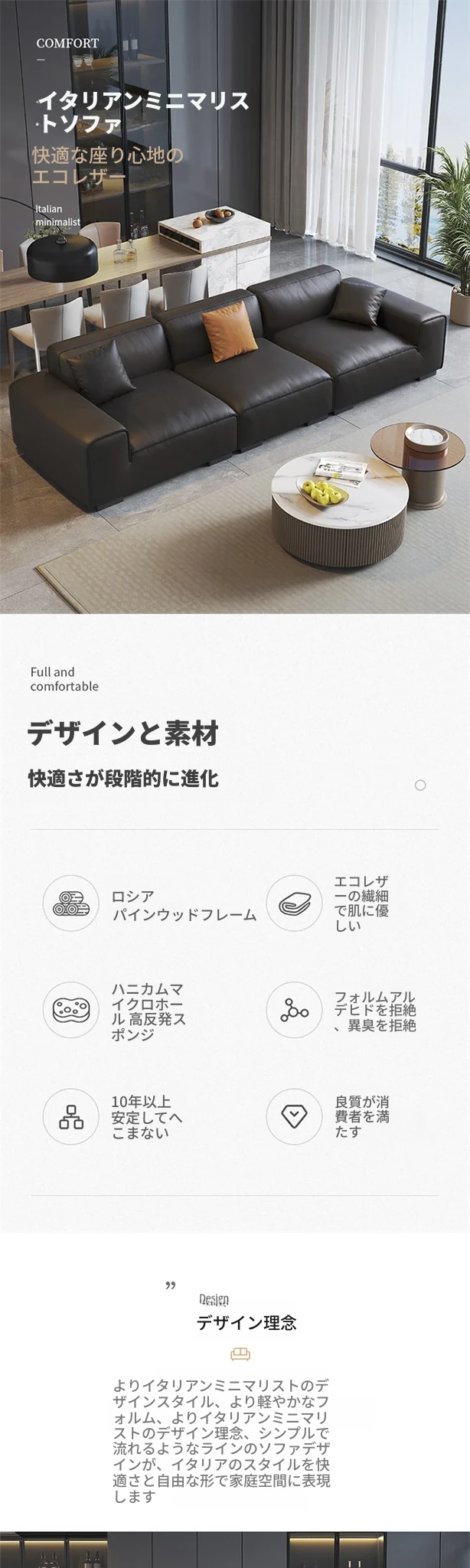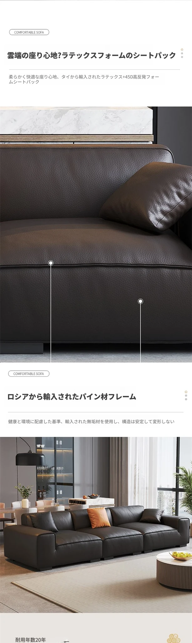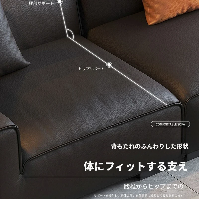 人気のイタリアンミニマル真皮ソファ!コンパクトサイズから大きなリビングにも最適。現代的でシンプルなデザイン、豆腐ブロックスタイルで快適さを追求。夏の涼しさを演出するブラックレザー。あなたの空間を一新!