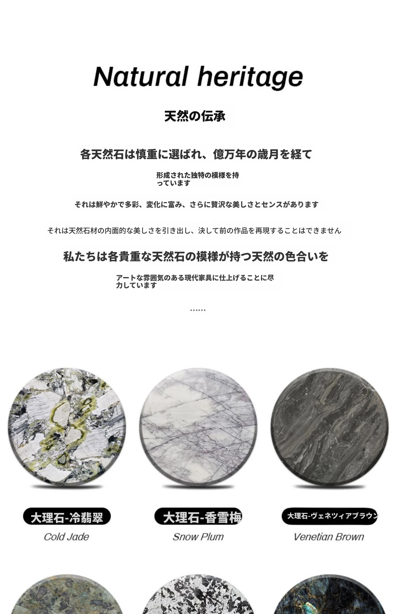 天然大理石円卓【1.35メートル回転盤なし】+6脚のダイニングチェア