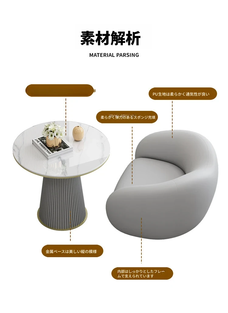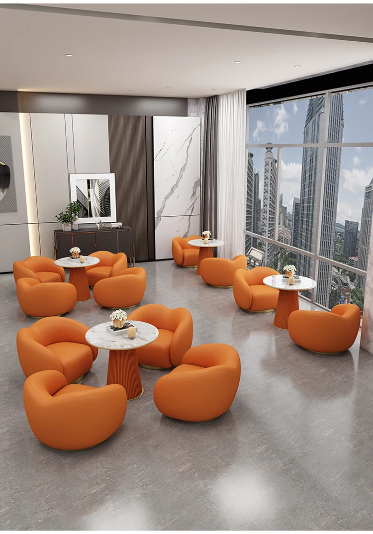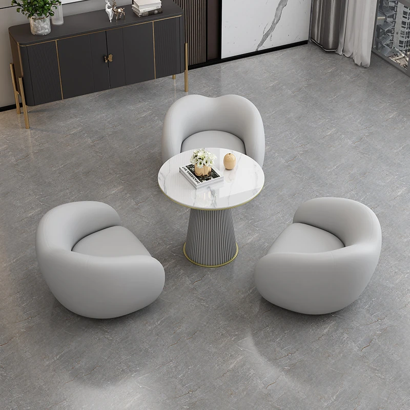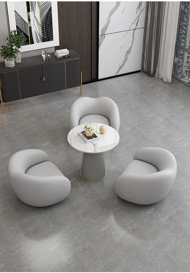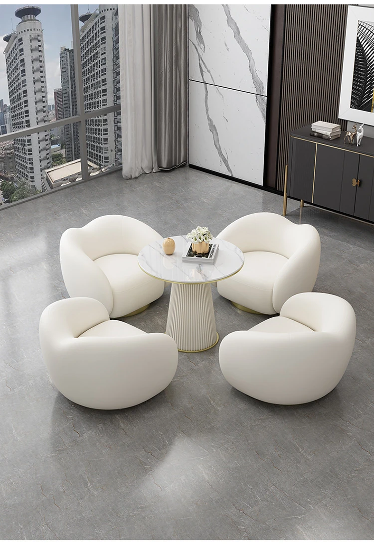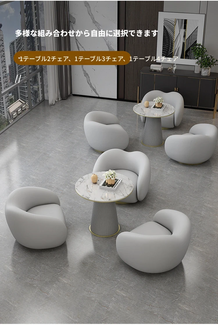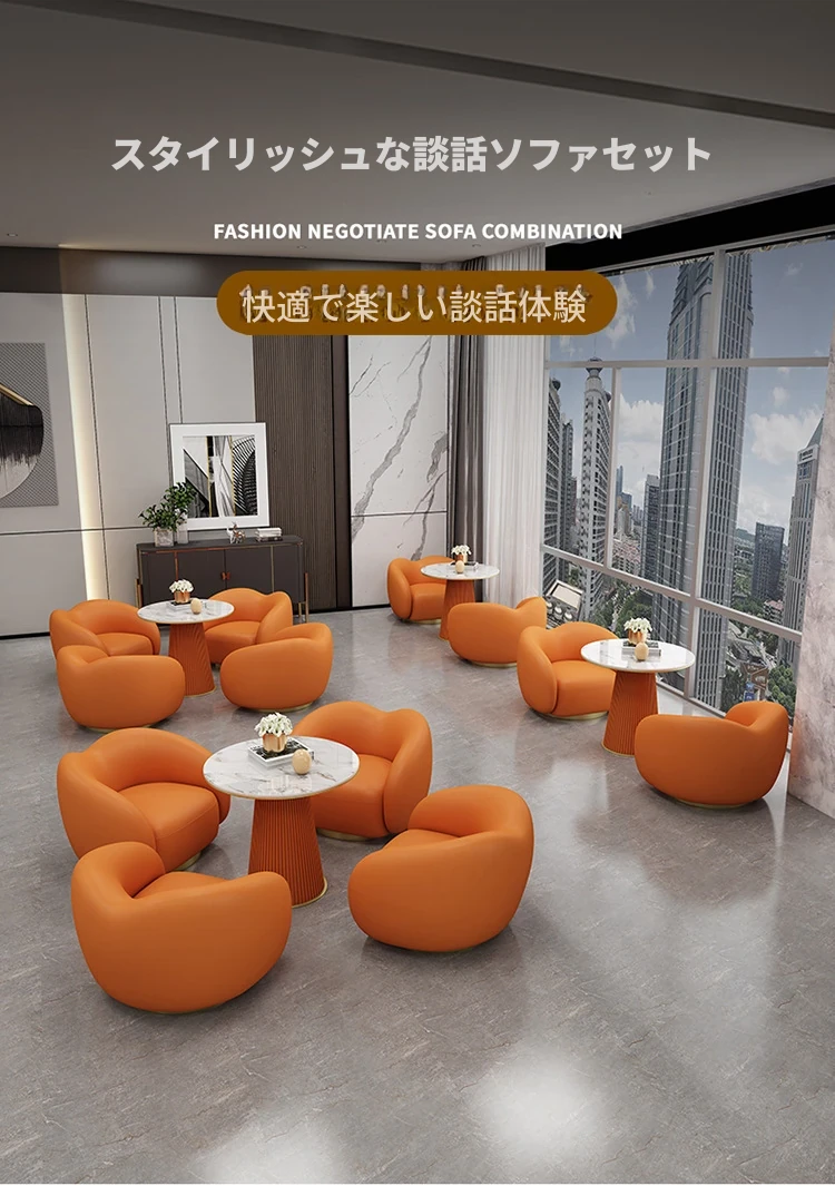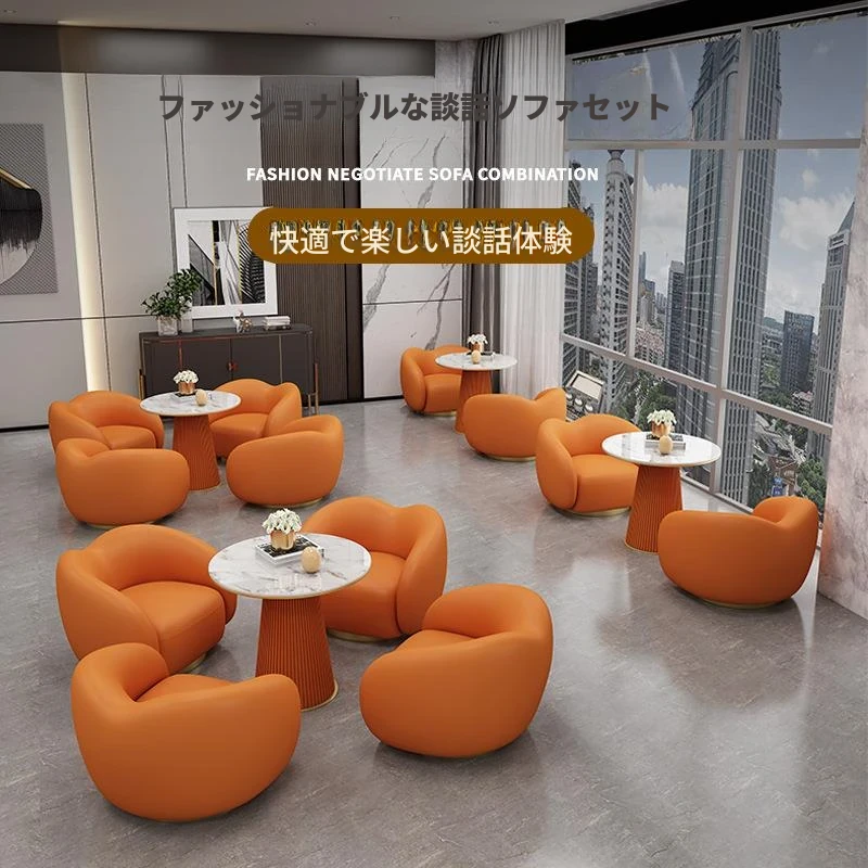 インフルエンサーおすすめ!オフィス休憩スペースにぴったりなラグジュアリーシンプルなソファチェア。ホテルロビーや商談に最適なリラックス接客用テーブル椅子セット!快適さとスタイルを両立。