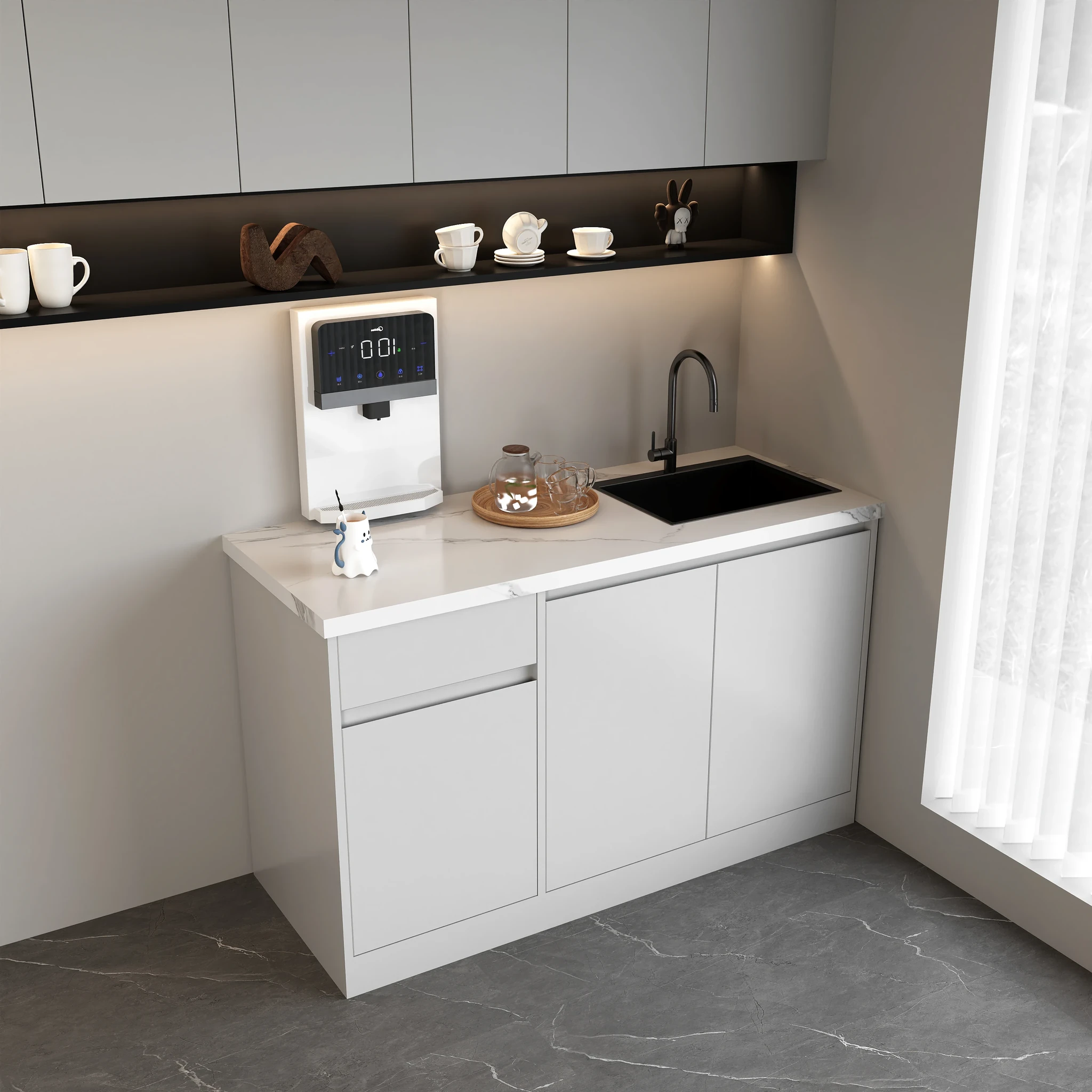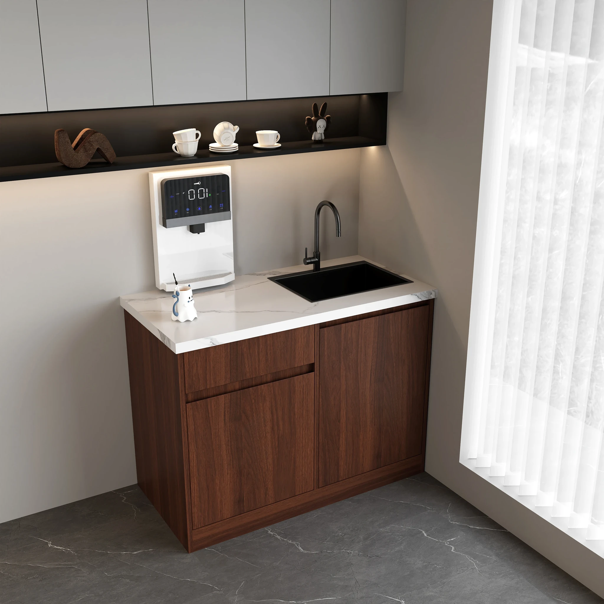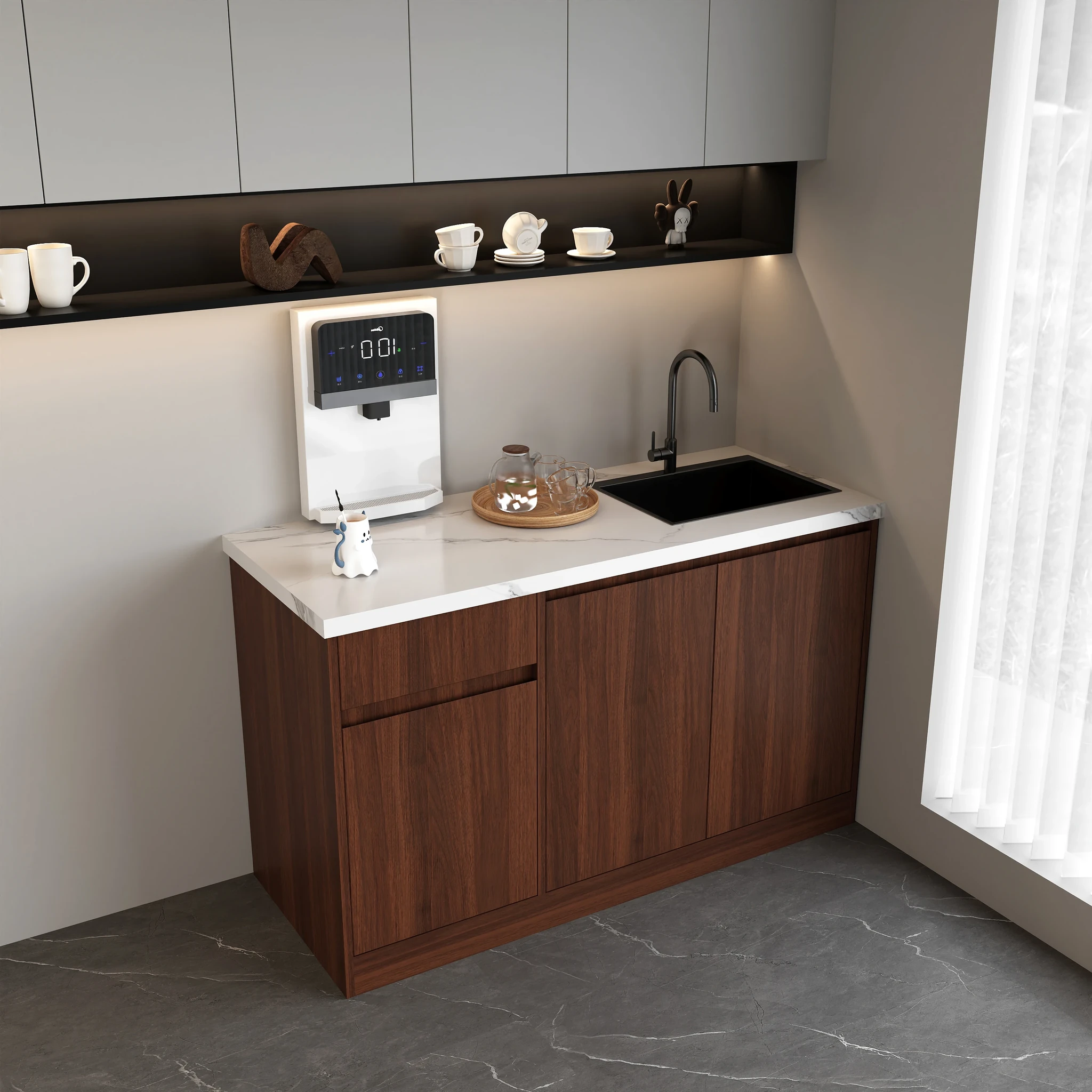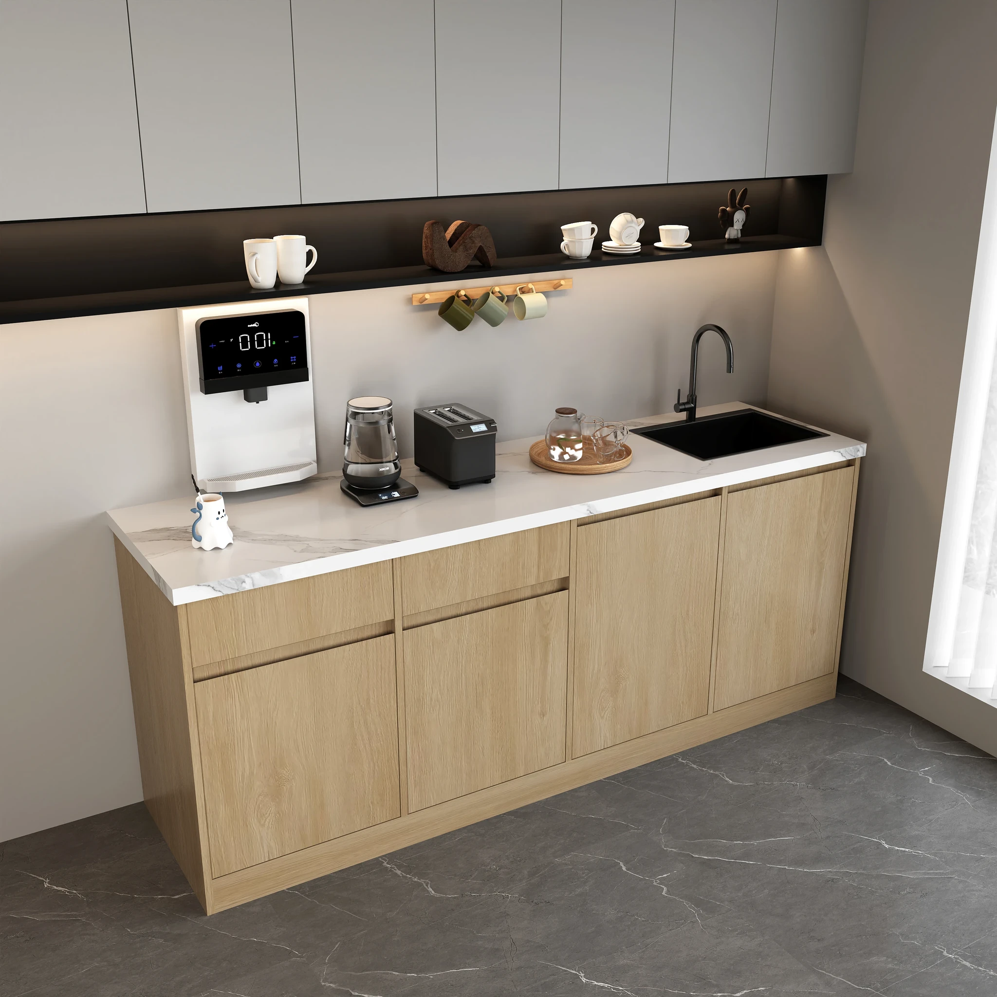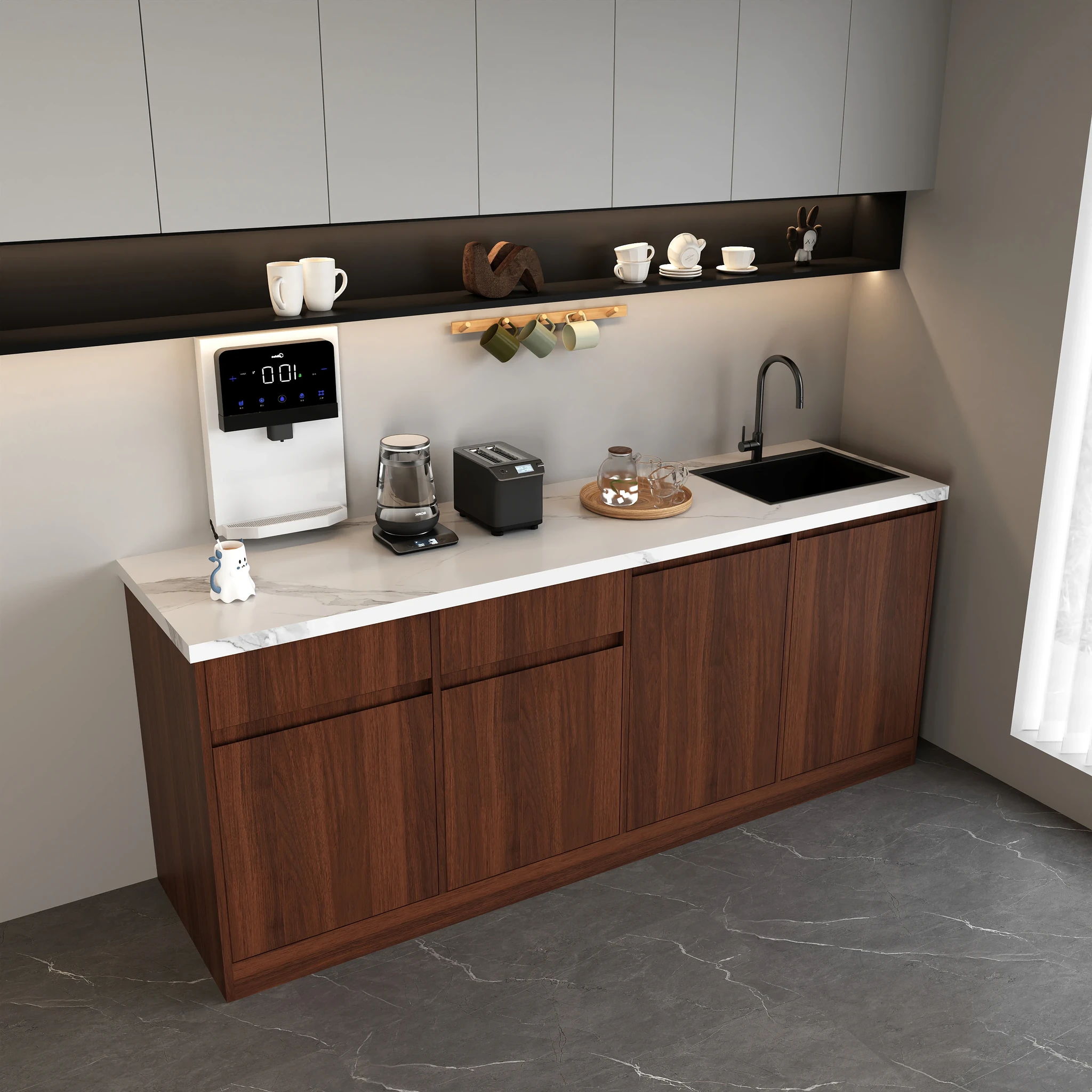多機能バーカウンターキッチン用ダイニングサイドキャビネット|会社のティーサービスや家庭用にも最適!壁に寄せて置ける一体型大理石操作台で、洗浄・カットもスムーズに!