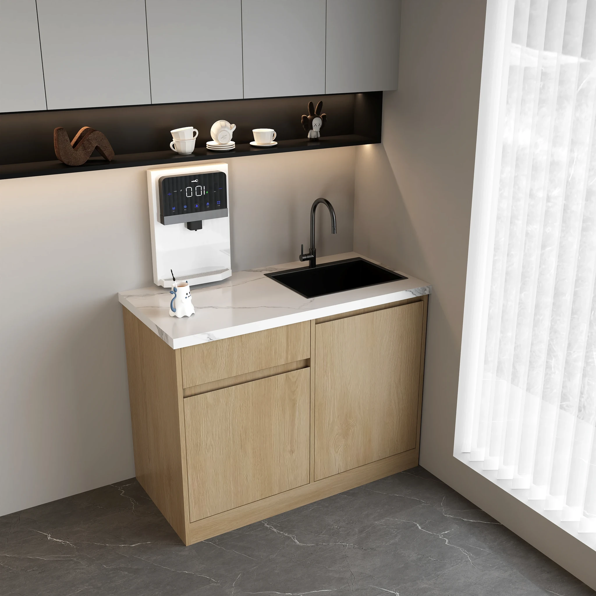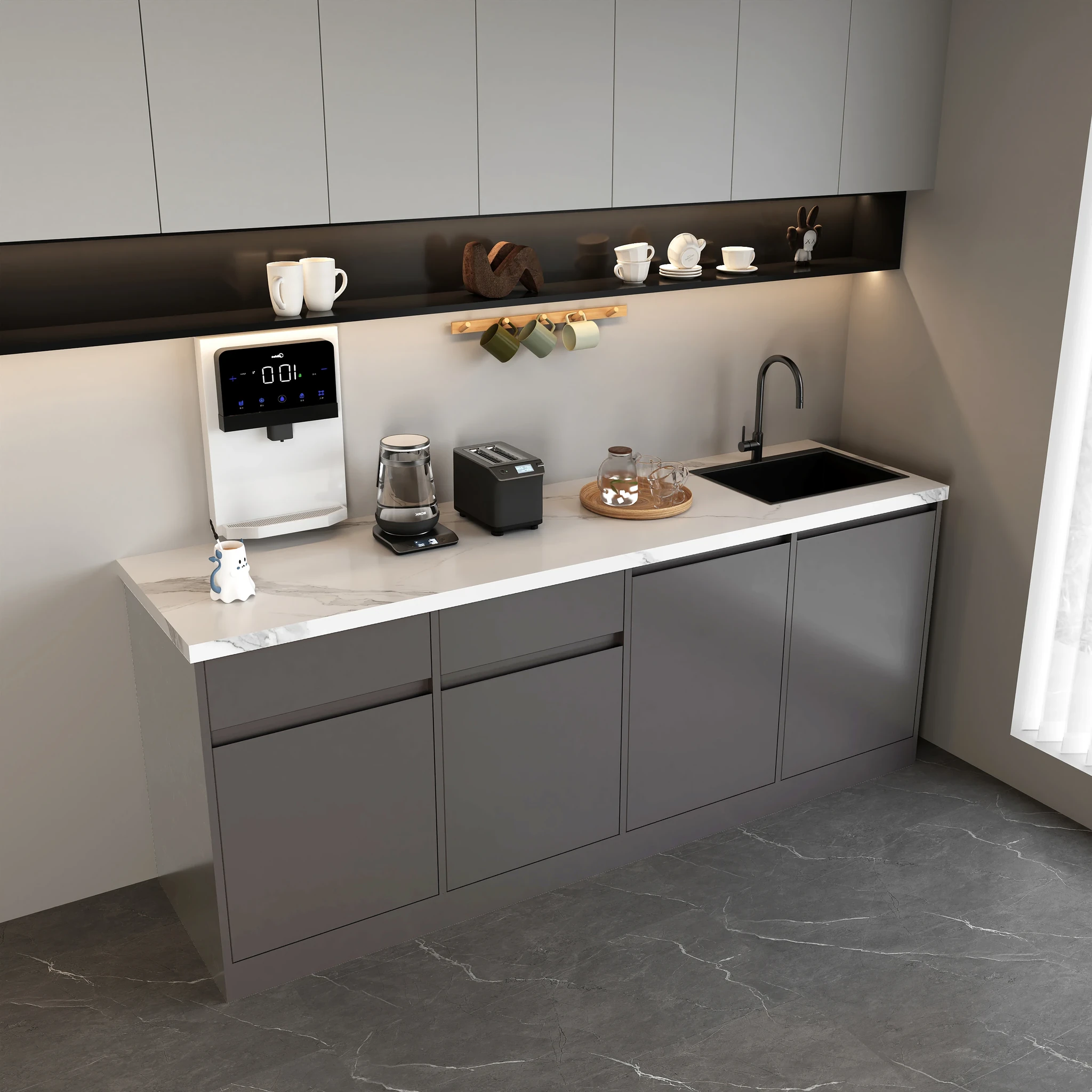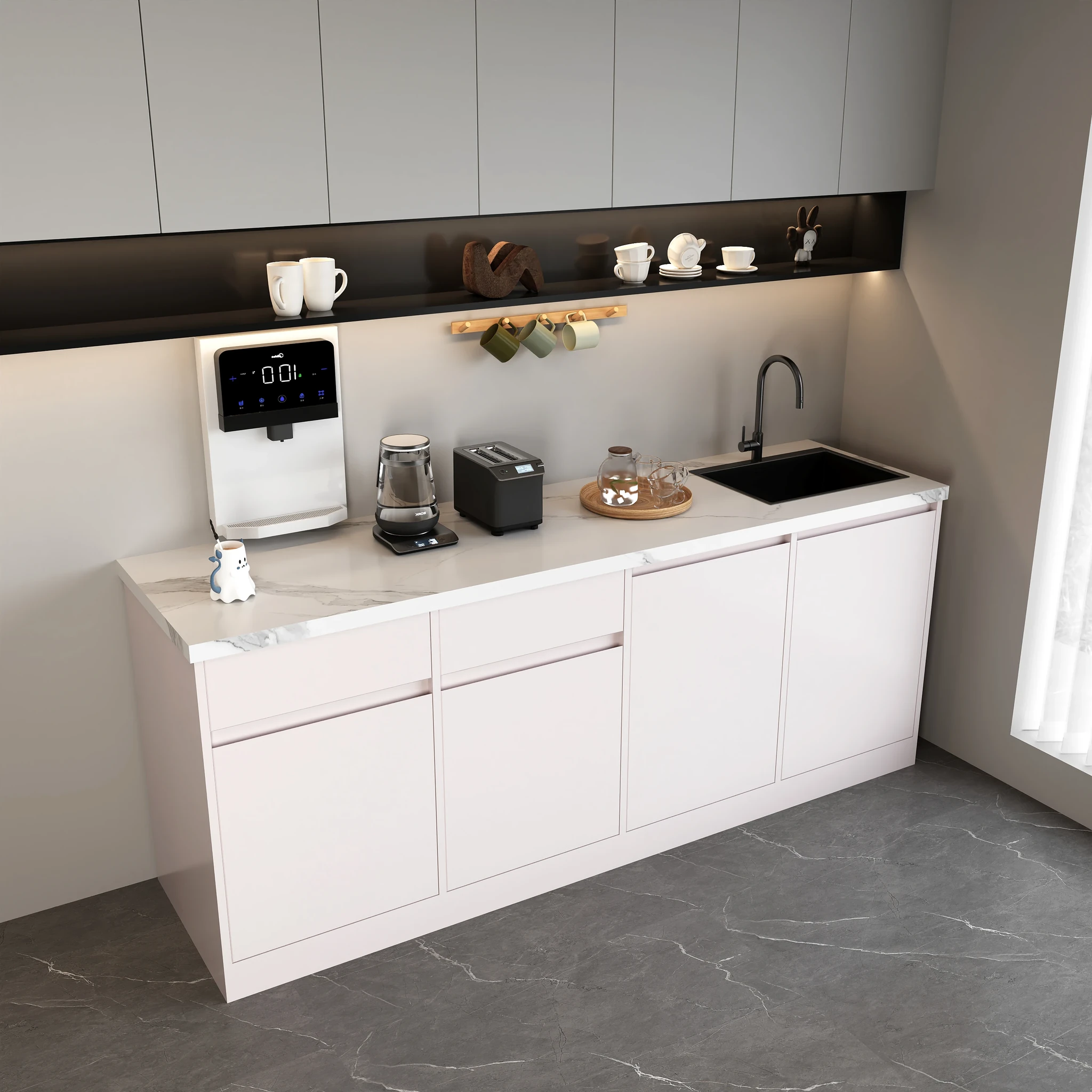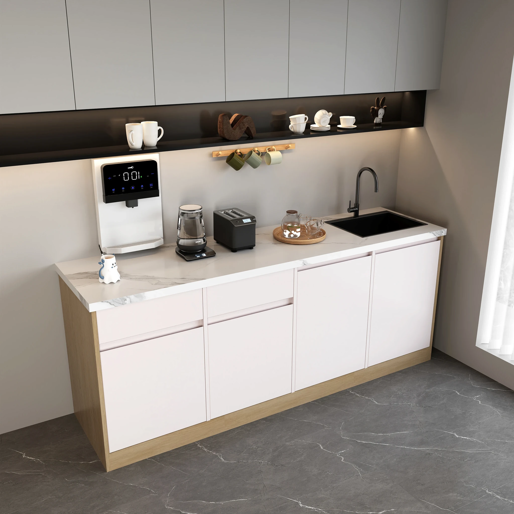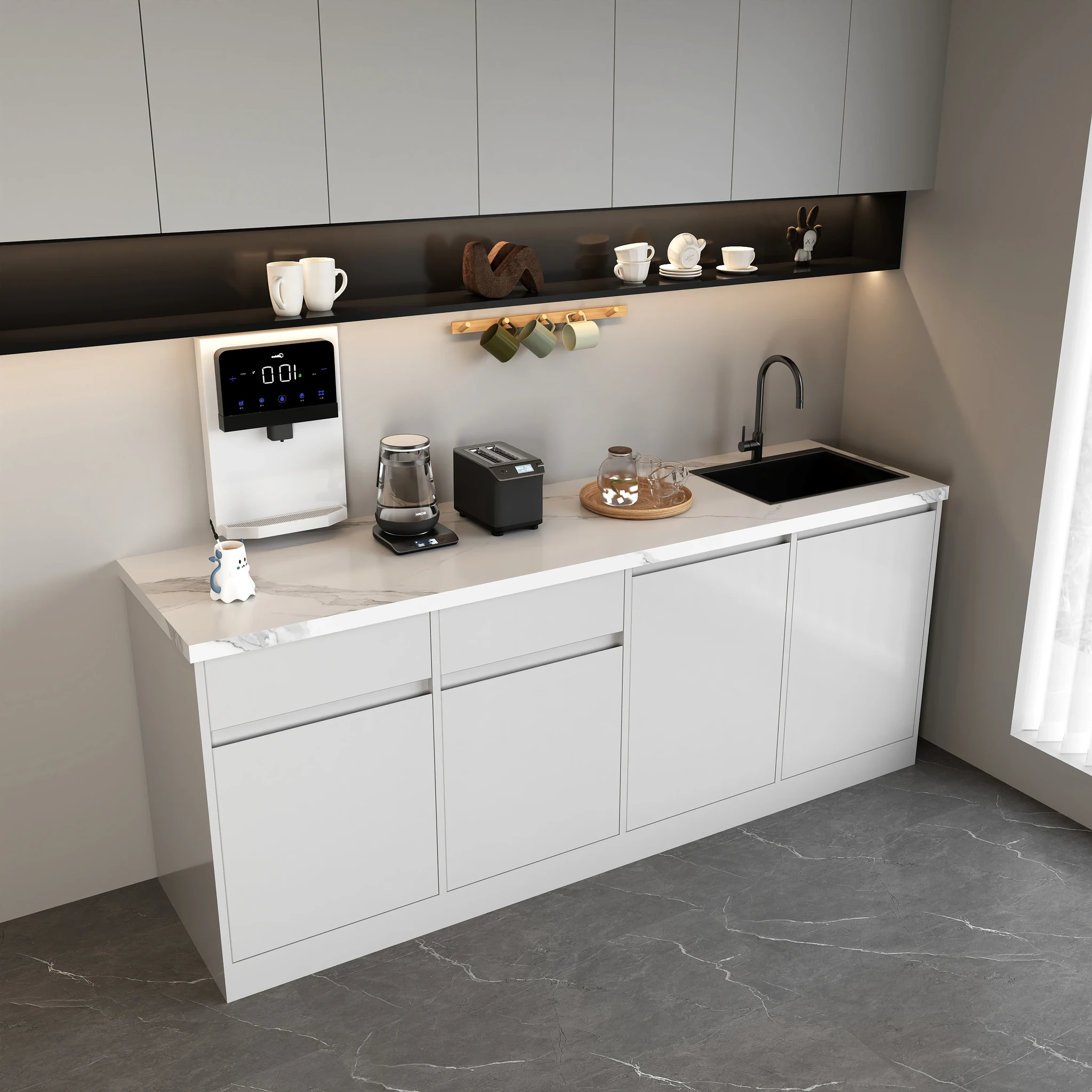 多機能バーカウンターキッチン用ダイニングサイドキャビネット|会社のティーサービスや家庭用にも最適!壁に寄せて置ける一体型大理石操作台で、洗浄・カットもスムーズに!