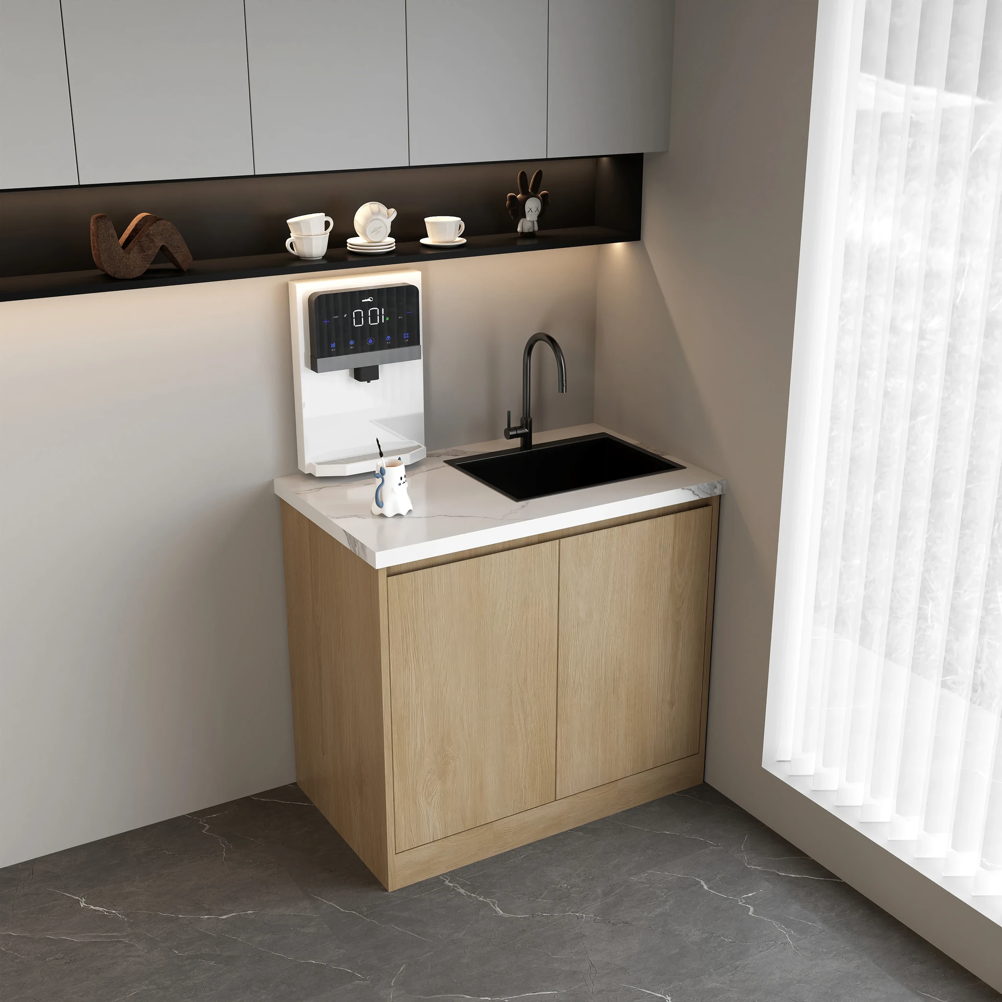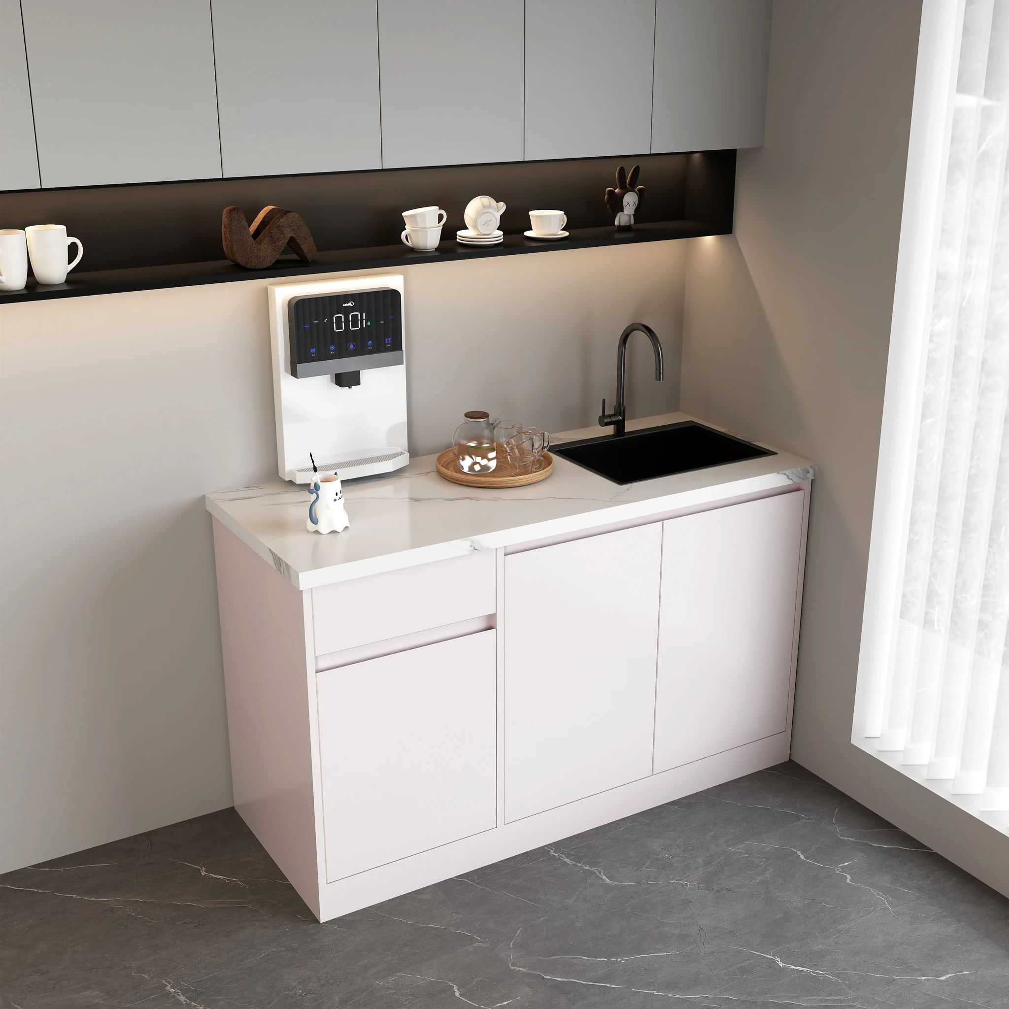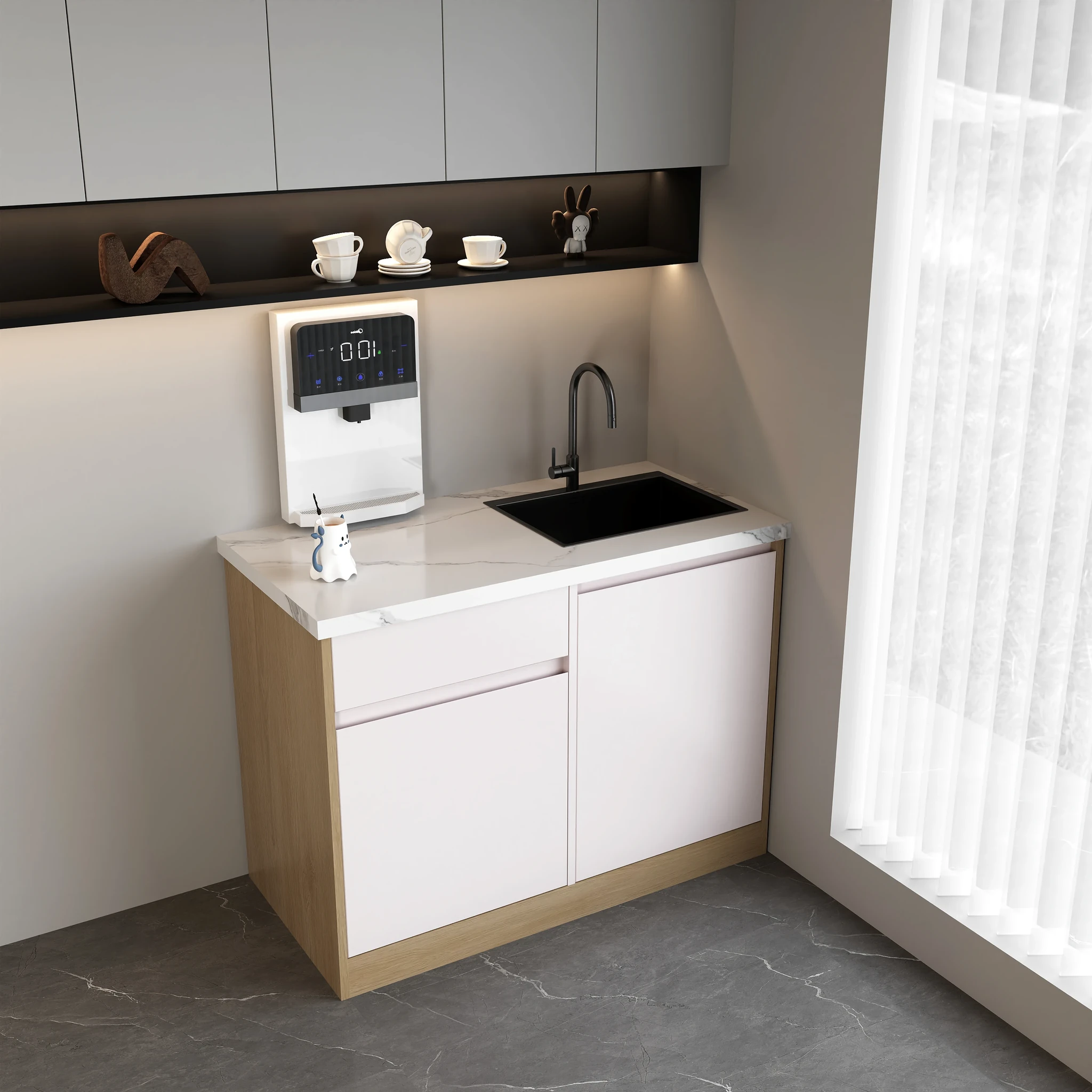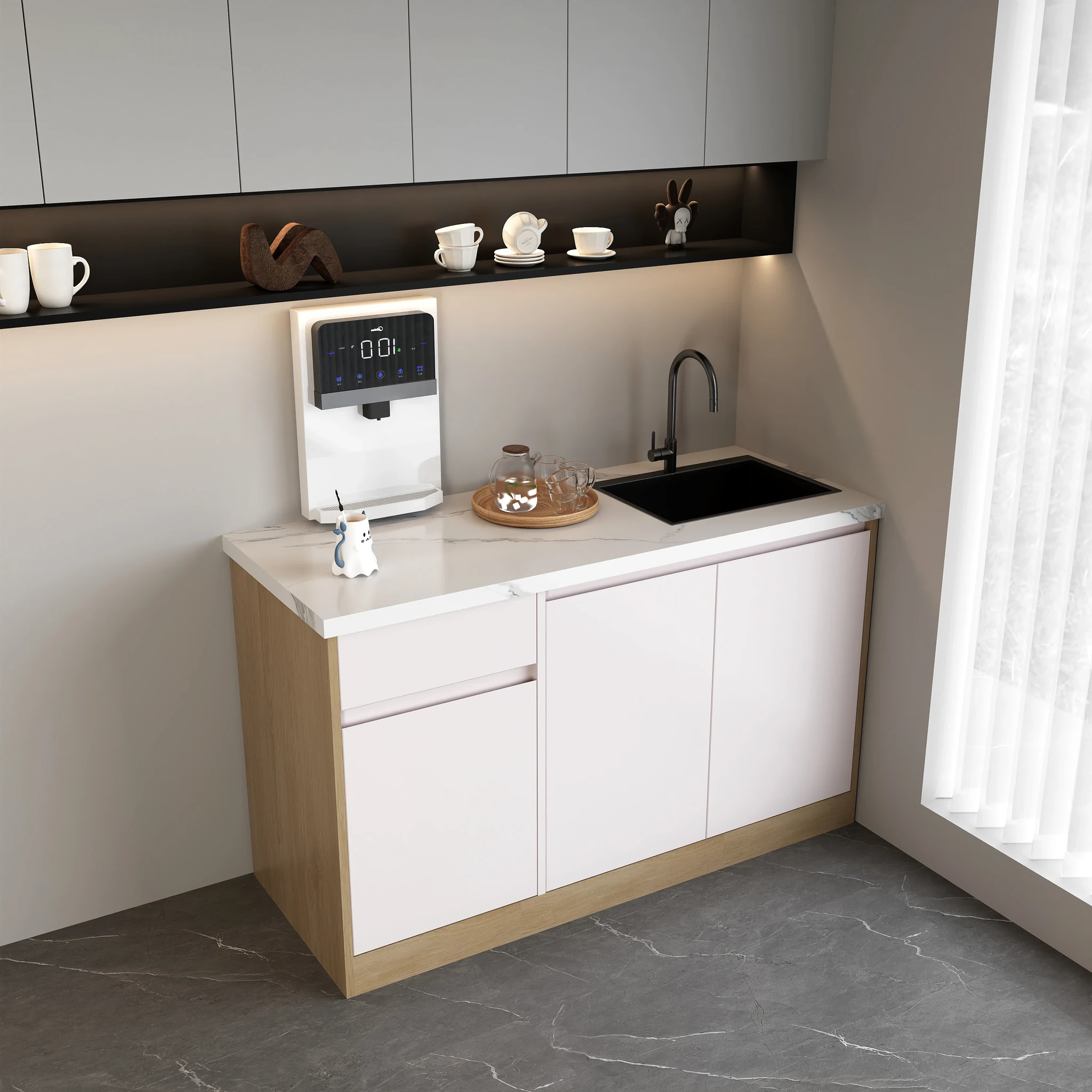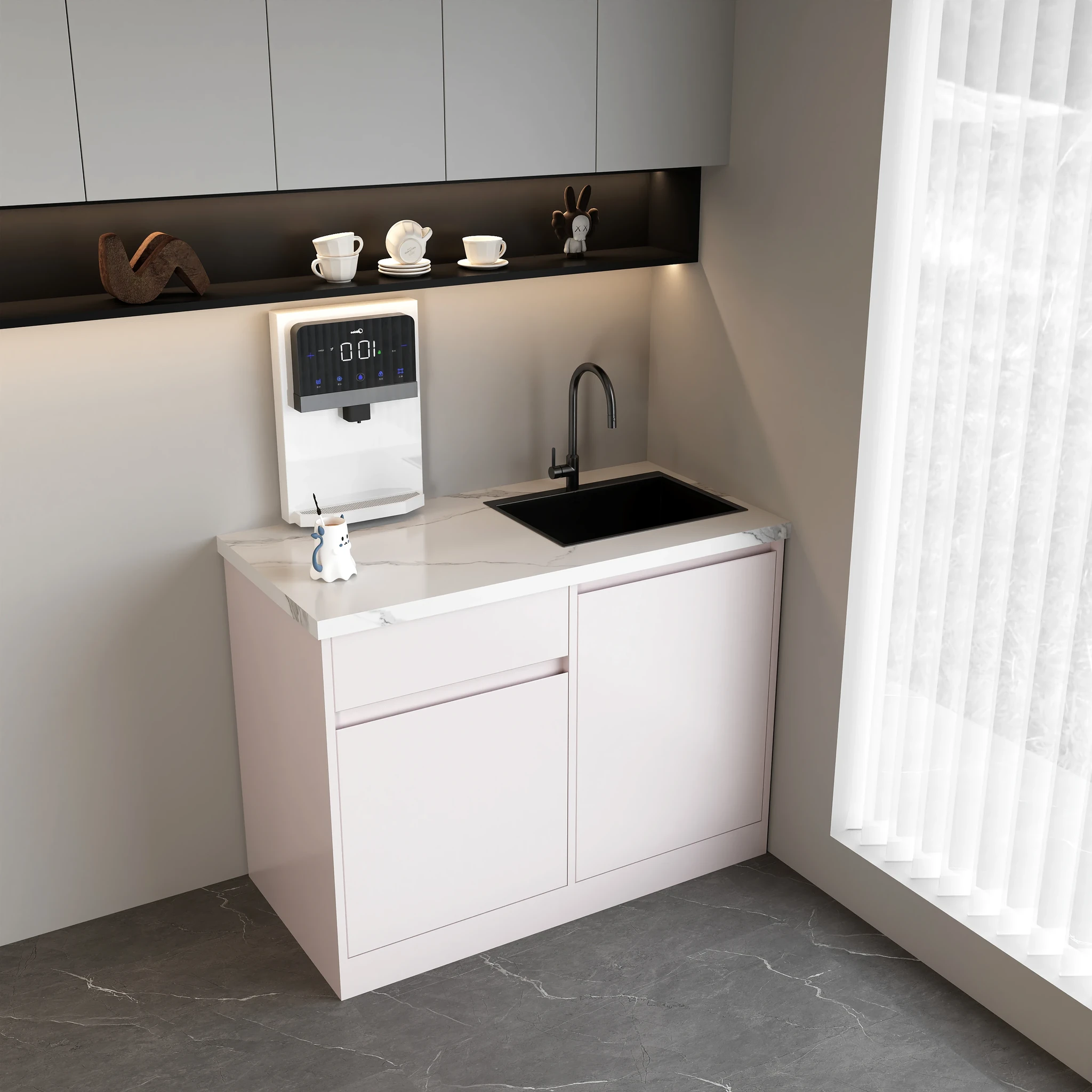 多機能バーカウンターキッチン用ダイニングサイドキャビネット|会社のティーサービスや家庭用にも最適!壁に寄せて置ける一体型大理石操作台で、洗浄・カットもスムーズに!