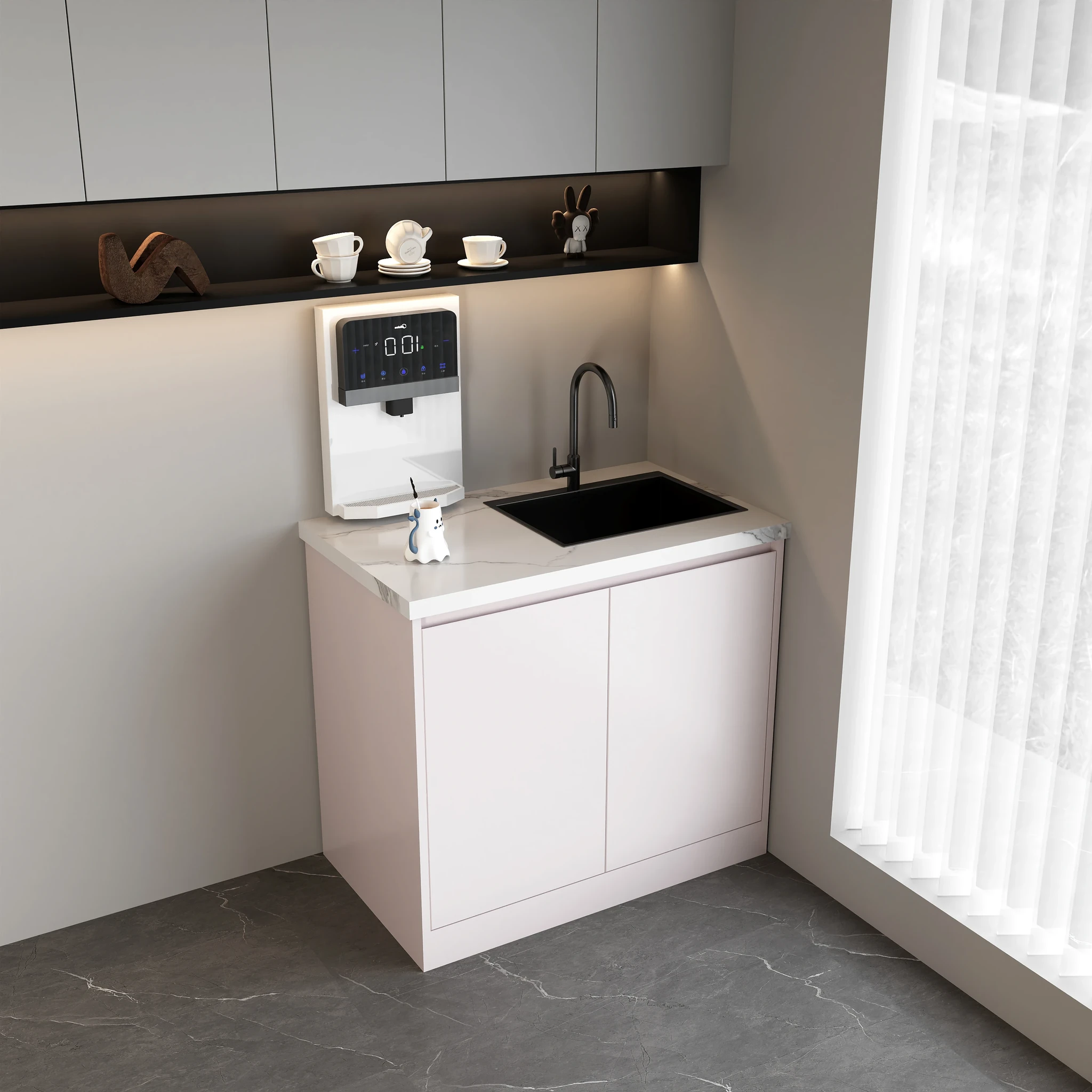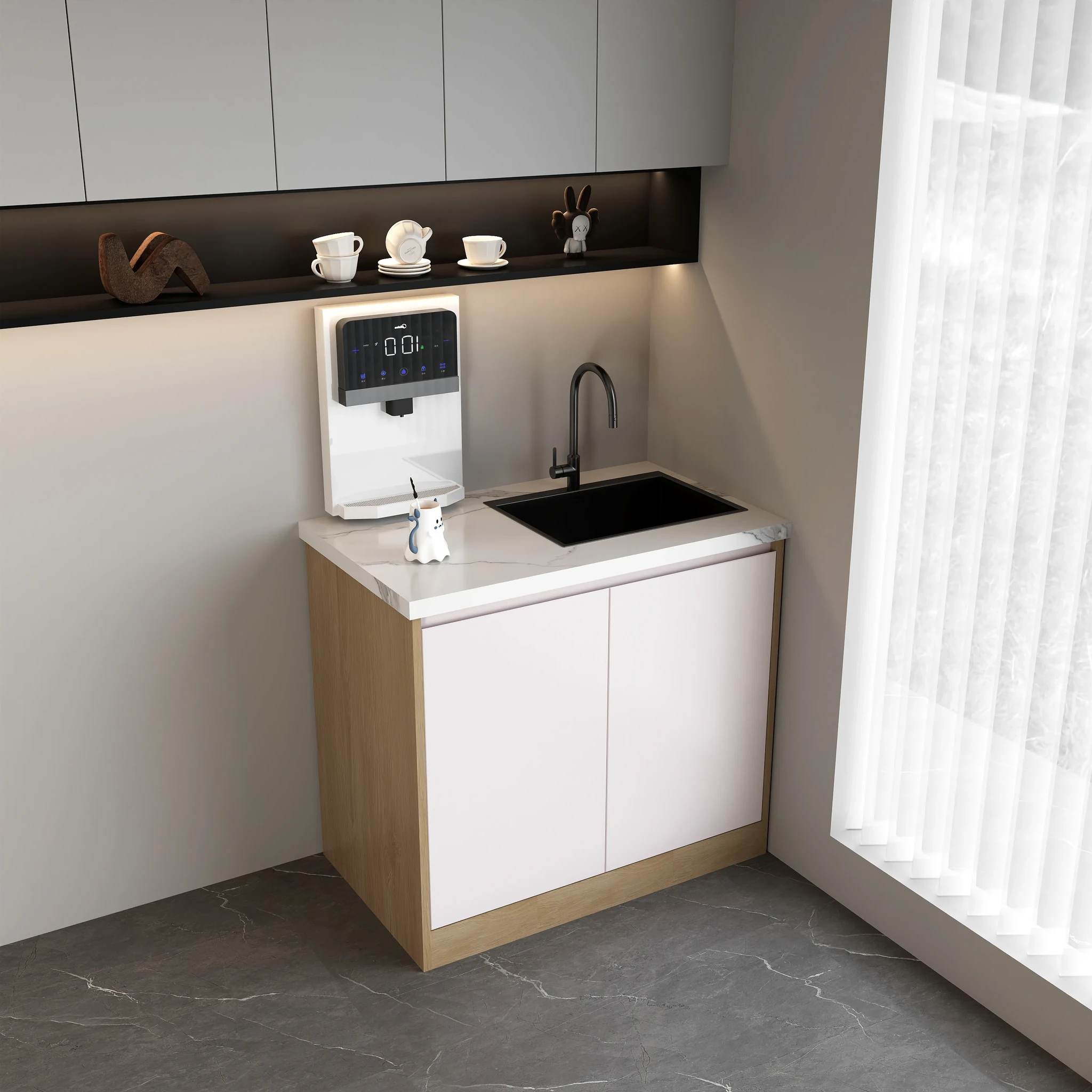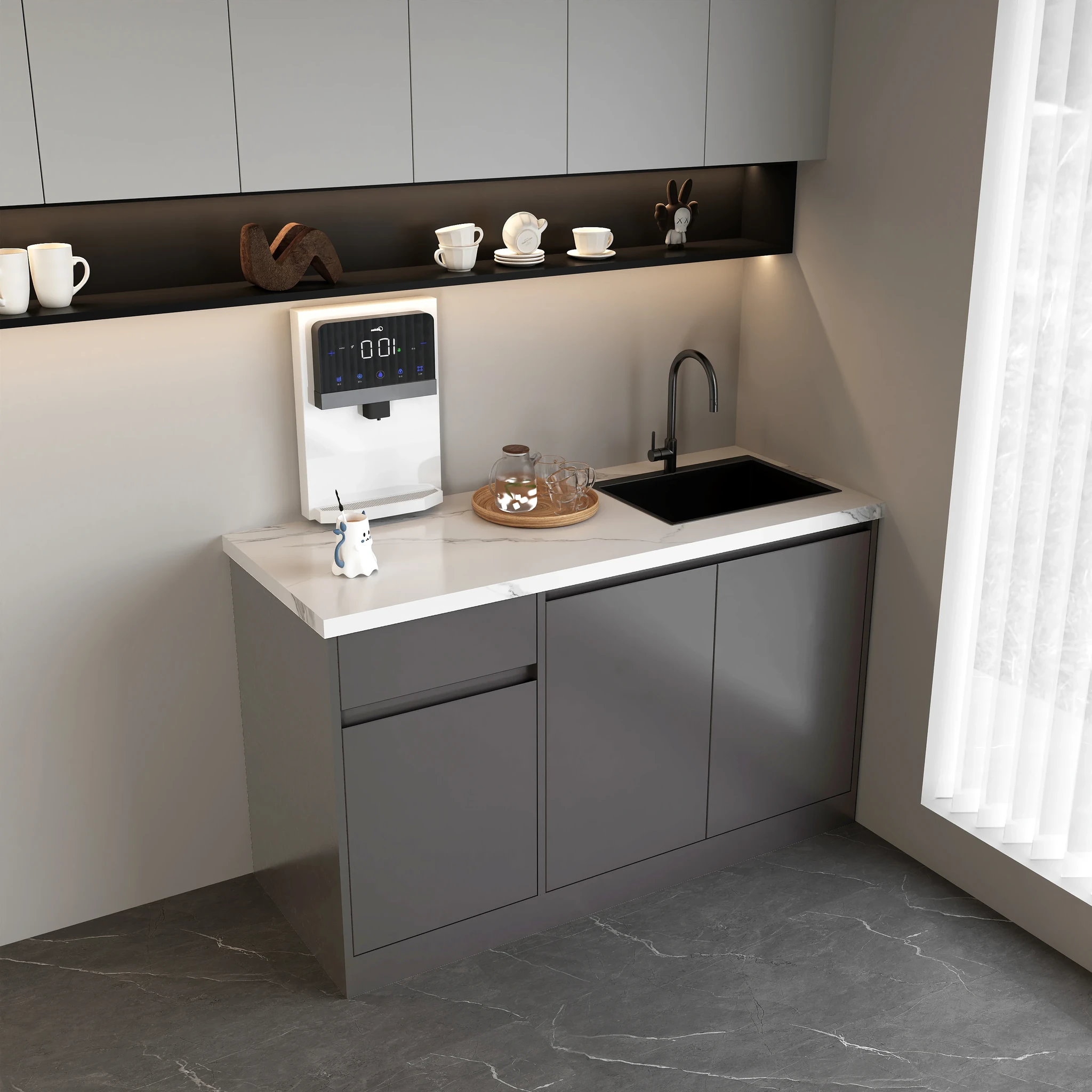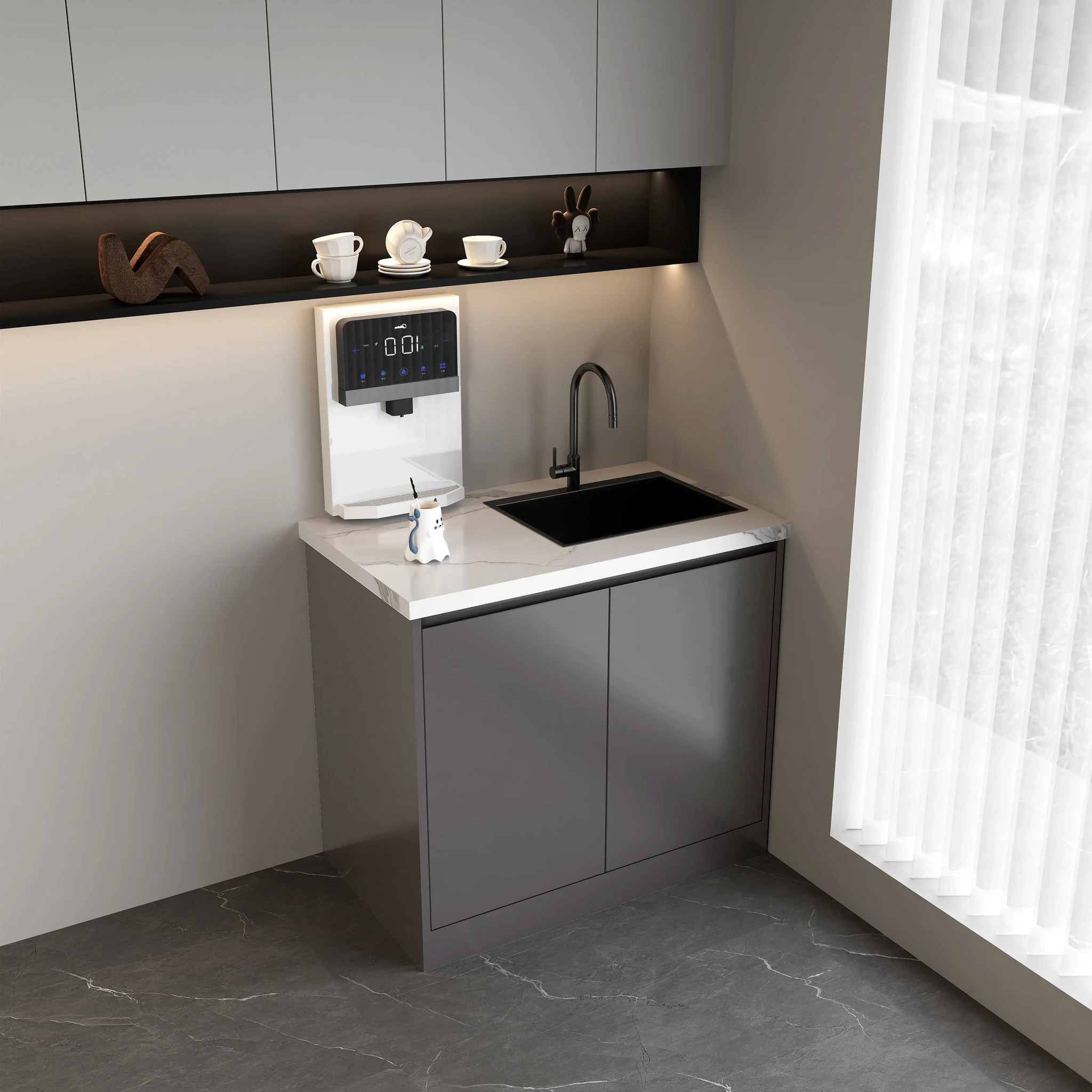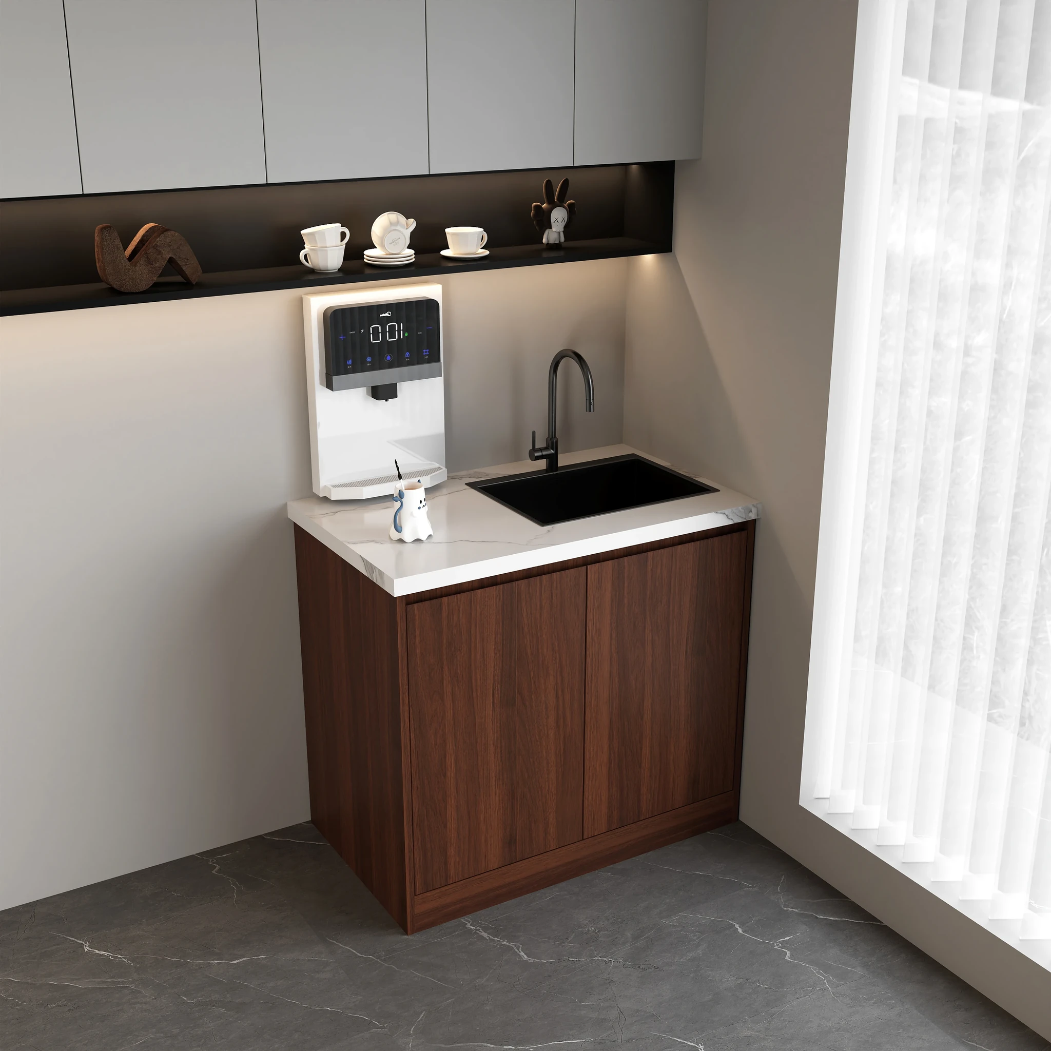 多機能バーカウンターキッチン用ダイニングサイドキャビネット|会社のティーサービスや家庭用にも最適!壁に寄せて置ける一体型大理石操作台で、洗浄・カットもスムーズに!