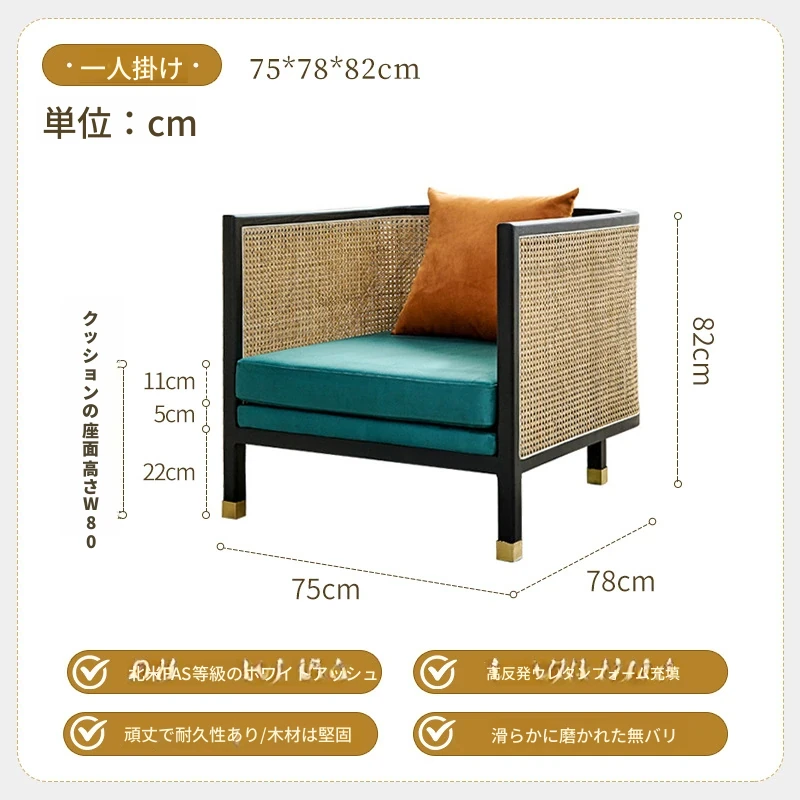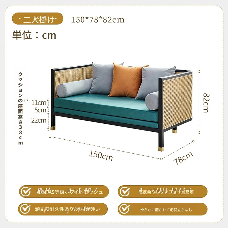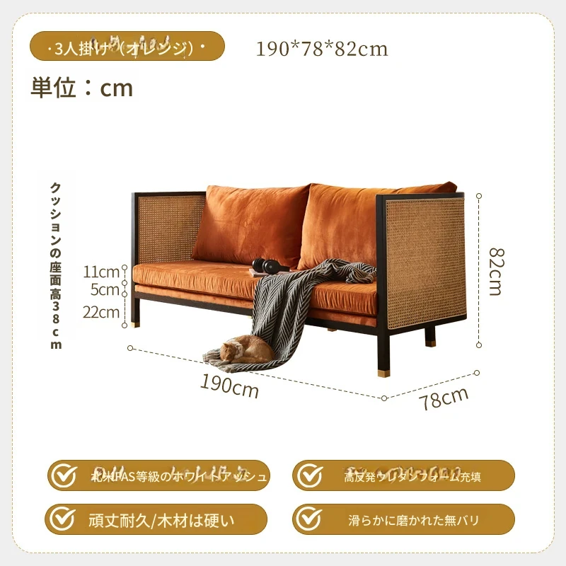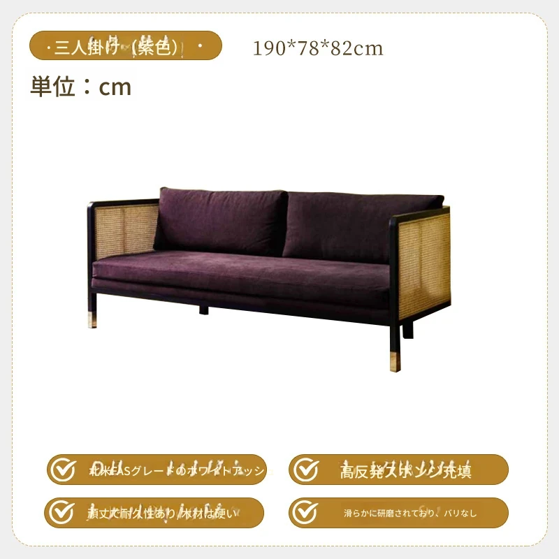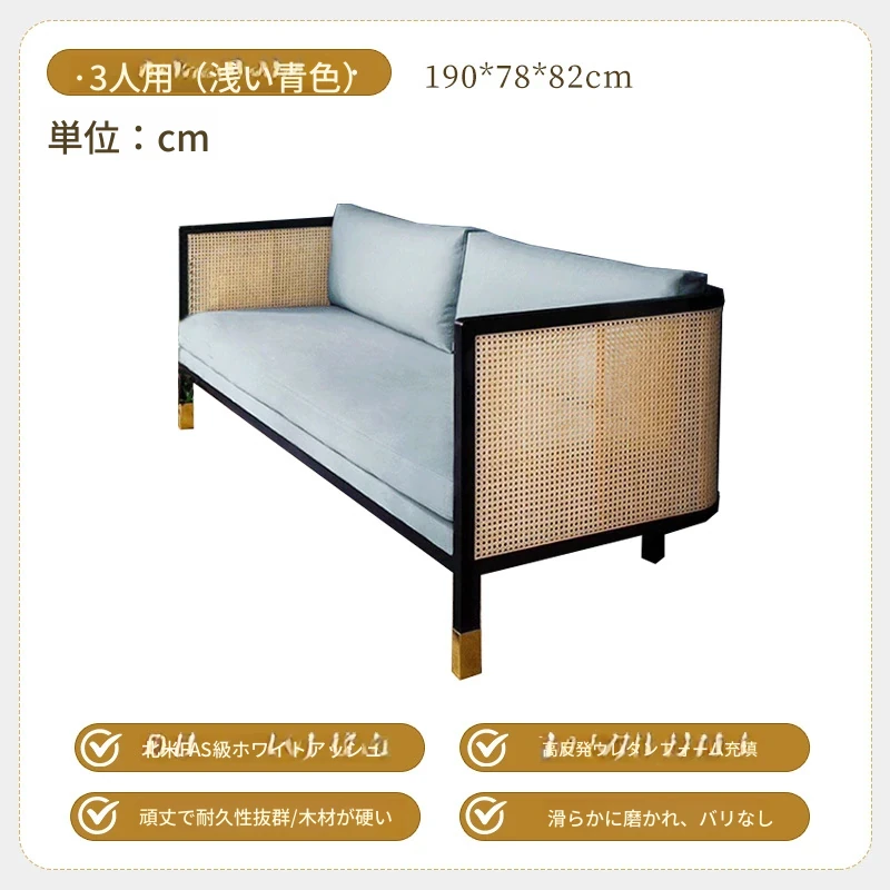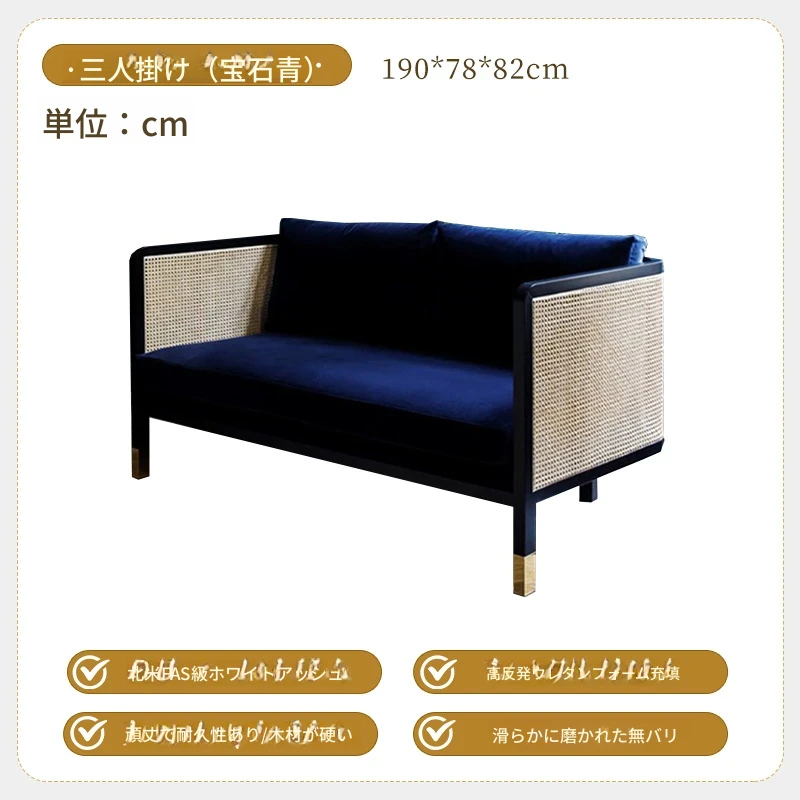 レトロなラグジュアリー感漂う無垢材と籐編みのソファ - 新中式スタイルのリビングにぴったり!侘寂風の民宿スタイル、3人掛けソファ、ホワイトアッシュ材使用で、上質なくつろぎ空間を演出します。