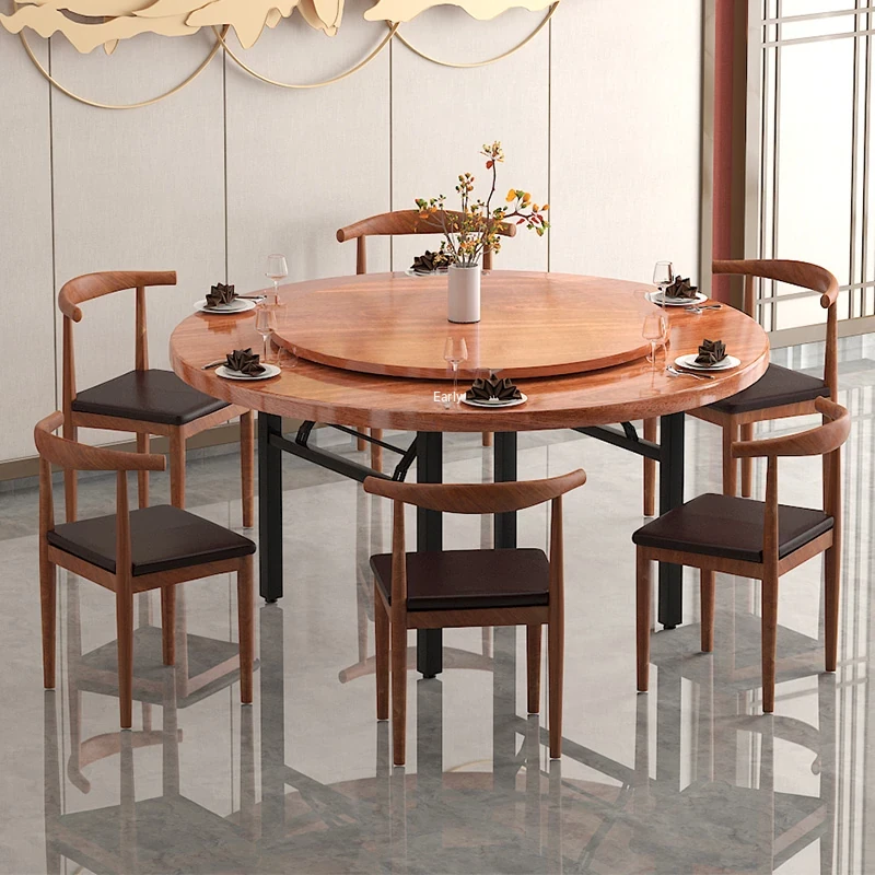 Extra Thick Solid Wood Round Dining Table with Lazy Susan - Ideal for 10-15 People in Homes, Hotels, and Restaurants - Perfect for Family Gatherings and Special Occasions